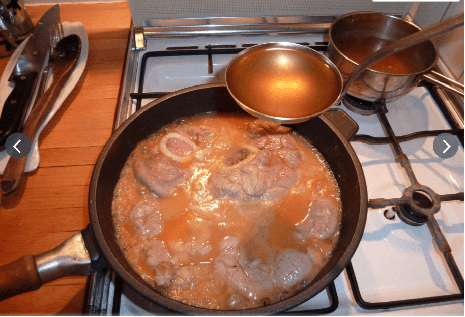Petite précision sur l’utilisation de la tomate. Dans les recettes datant du XVIIIe siècle, elle n’y figurait pas. Les Milanais utilisaient ce fruit seulement comme plante ornamentale et certains croyaient même qu’il était vénéneux. Il faudra encore une centaine d’années pour convaincre les Lombards du contraire. De nos jours, on utilise de la tomate ou du concentré de tomates (en hiver il faut bien s’adapter).