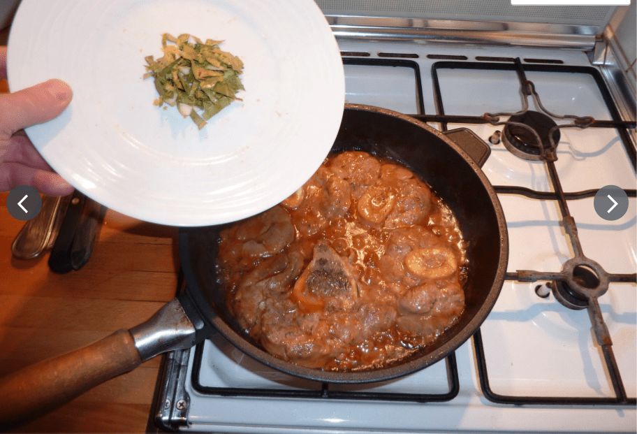 Revenons-en au plat principal : quand l’osso buco est prêt, ajoutez la gremolata, avant de le servir à table bien chaud.