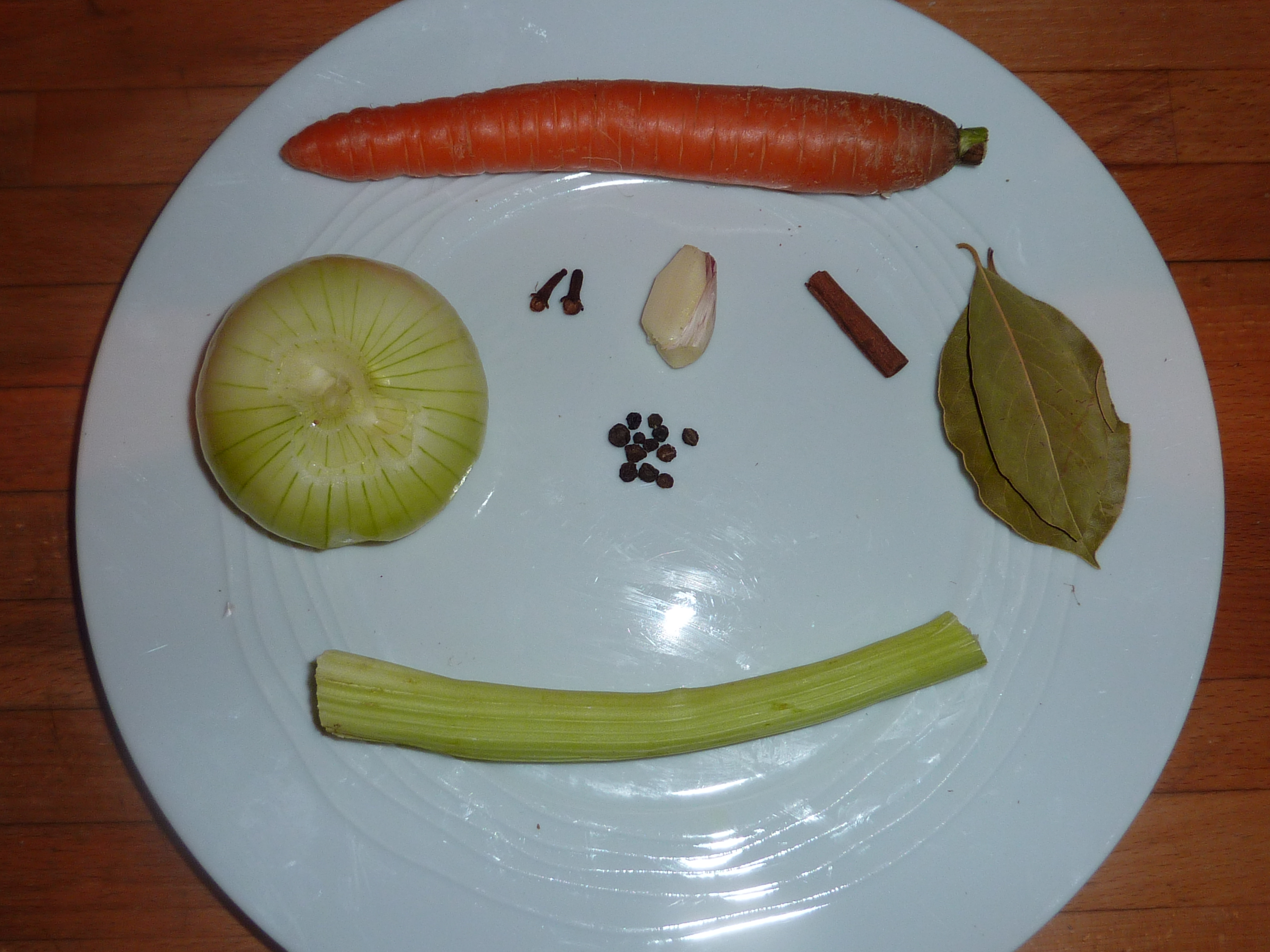 2 feuilles de laurier, 2 clous de girofle, un morceau de cannelle, quelques grains de poivre