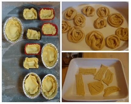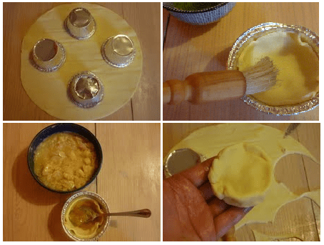 Soit vous la faites à la main, soit – si vous êtes fainéants comme moi, vous l’achèterez toute prête. Etalez-la sur le plan de travail et faites des cercles réguliers de pâte (aidez-vous avec des moules en aluminium ou un verre). A l’aide d’un pinceau, baignez d’huile l’intérieur du moule, avant de le remplir avec la pâte brisée, elle-même farcie de pasta reale et/ou de marmelade d’orange, comme moi. Refermez avec de la pâte brisée, et passez à nouveau le pinceau. Allumez le four à 200°, et pendant qu’il préchauffe, revenez aux cartellate et chiacchiere.