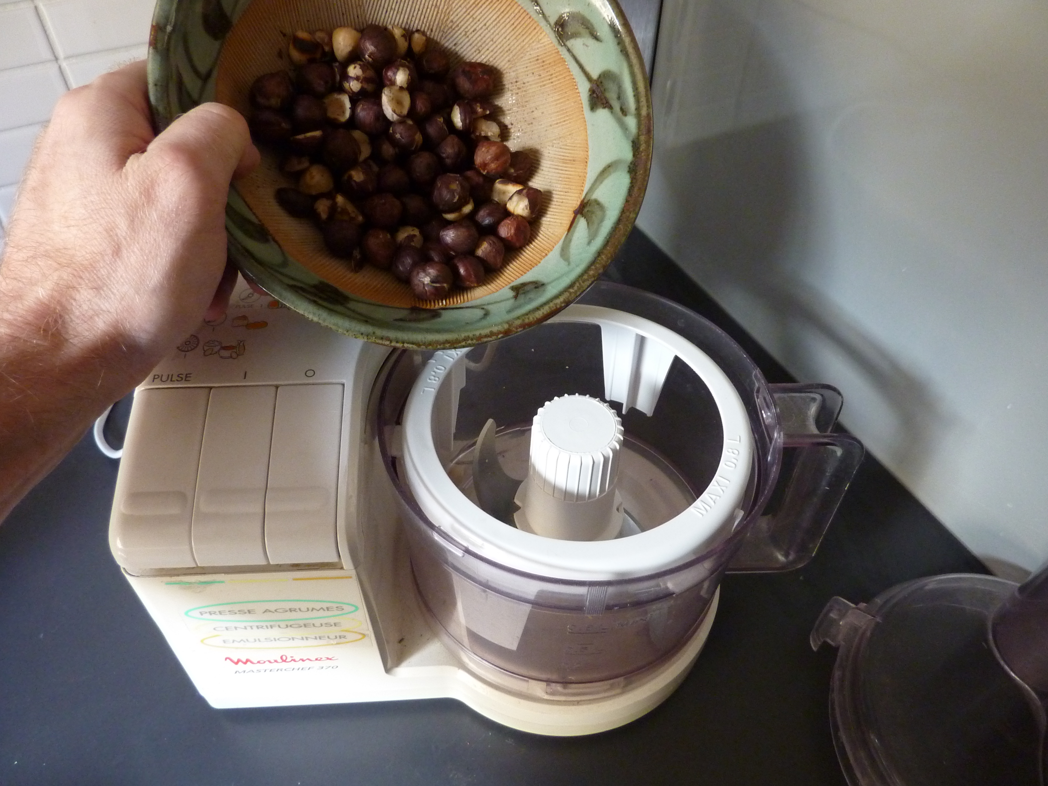 Laissez vous tenter par le frisson de la création…Pour la crème de noisettes, il faut d’abord faire bouillir les noisettes une dizaine de minutes, après quoi on enlèvera la peau externe.