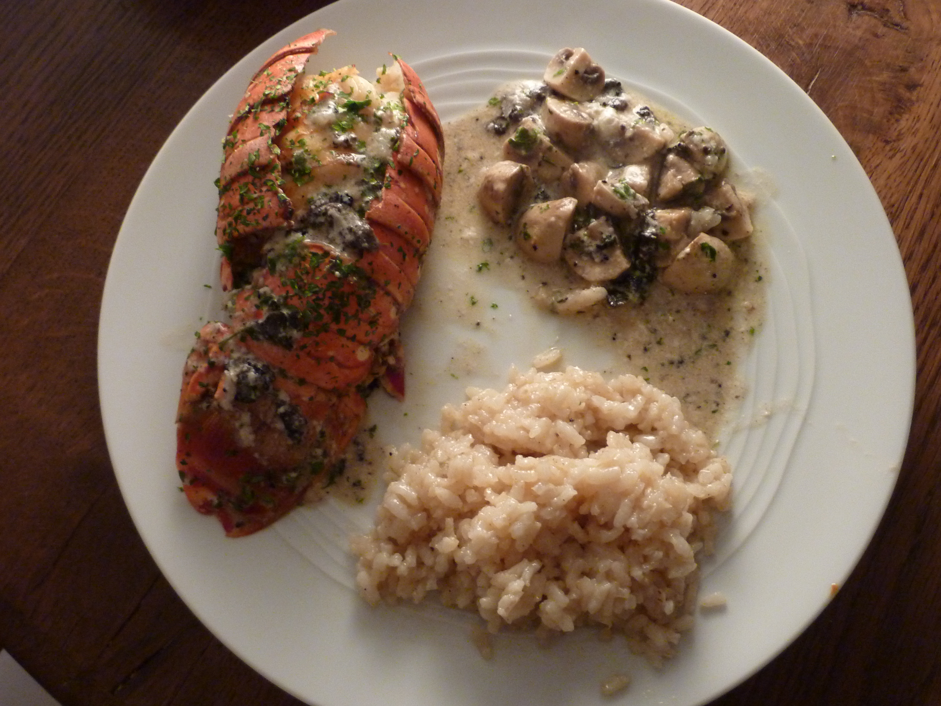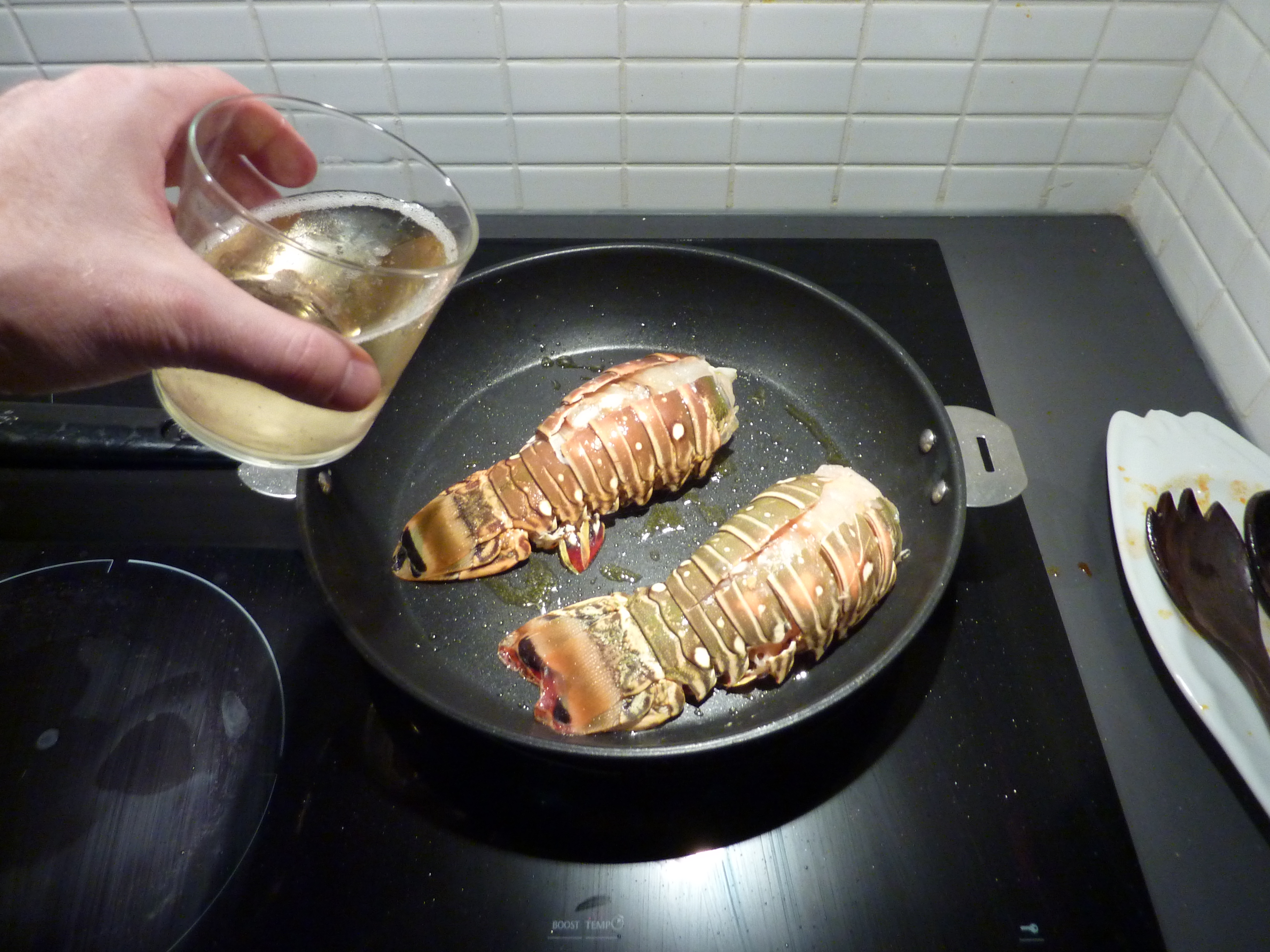 Vous imaginerez alors ma surprise quand j’ai trouvé des queues de langouste des Caraïbes surgelées pas très chères (22 euros les deux). Je sais, normalement je suis contre ce genre d’achats, mais pour une fois j’ai cédé au sentimentalisme et au fait qu’elles provenaient d’animaux pêchés (pas élevés) et congelés sur le bateau même. J’ai opté donc pour un repas en style grand seigneur, mais à l’italienne.