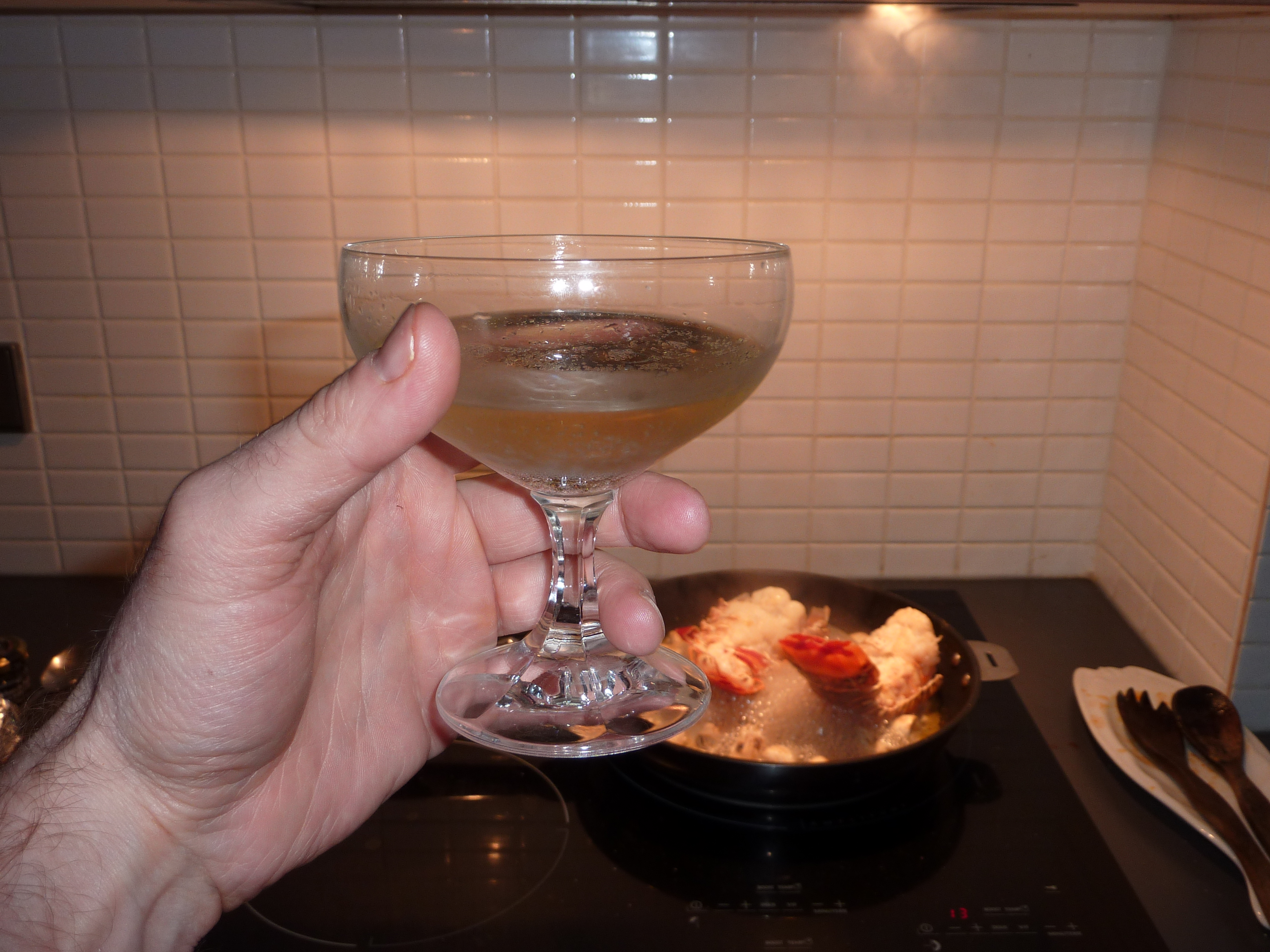 En attendant que le riz soit prêt, et que la sauce au champagne réduise de moitié, je me suis permis quelques coupes de champagne (ce sont les fêtes, que voulez-vous…).