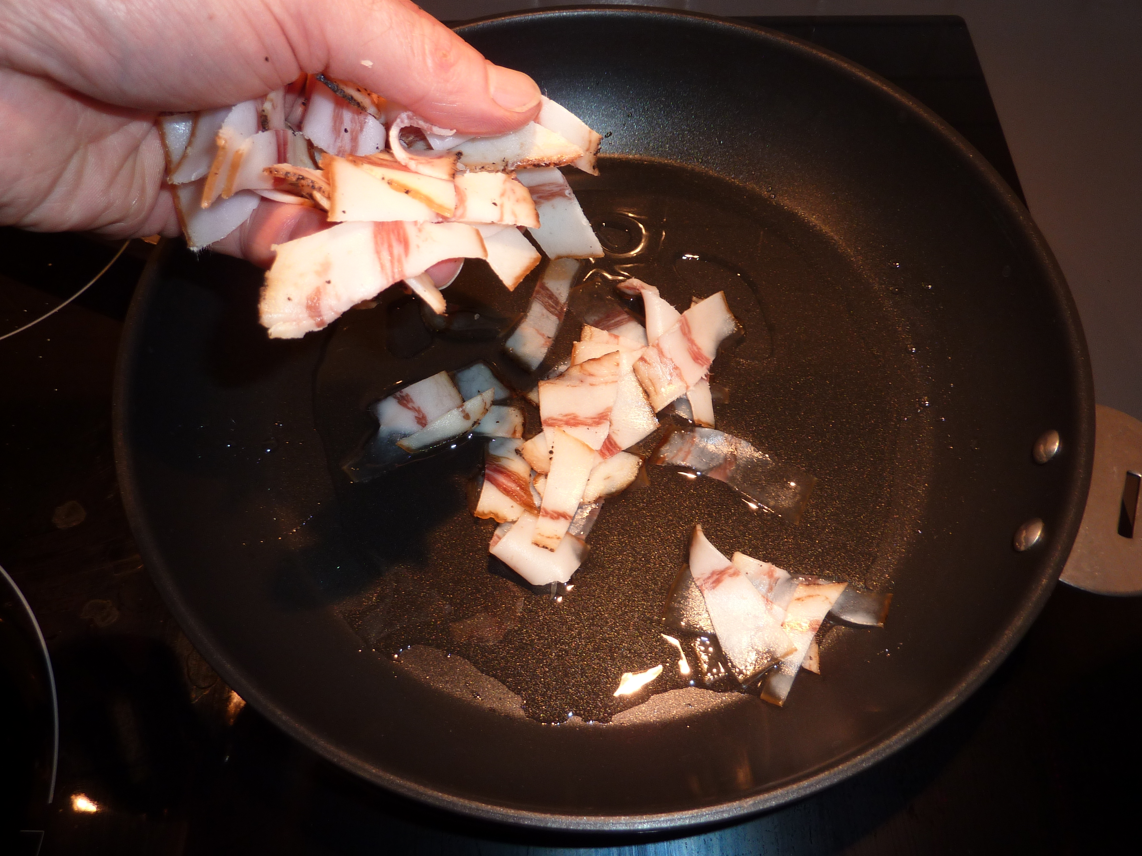 Je sais que vous piaffez de passer à table, alors voici les instructions. Coupez un morceau de saindoux et mettez-le à chauffer à feu doux dans une poêle.Spa 2