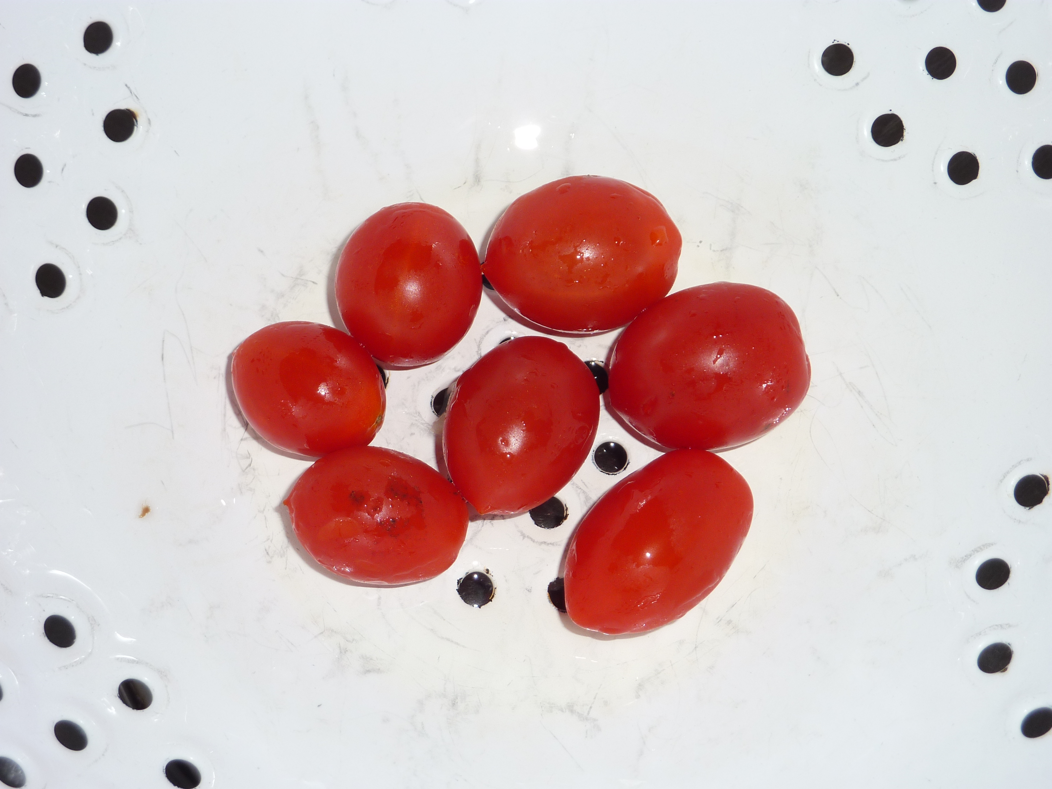 Et bien sûr n’oubliez pas les tomates. Normalement on utilise du coulis, mais au début d’été les tomates fraîches siciliennes sont excellentes, alors j’ai fait un petit mélange…