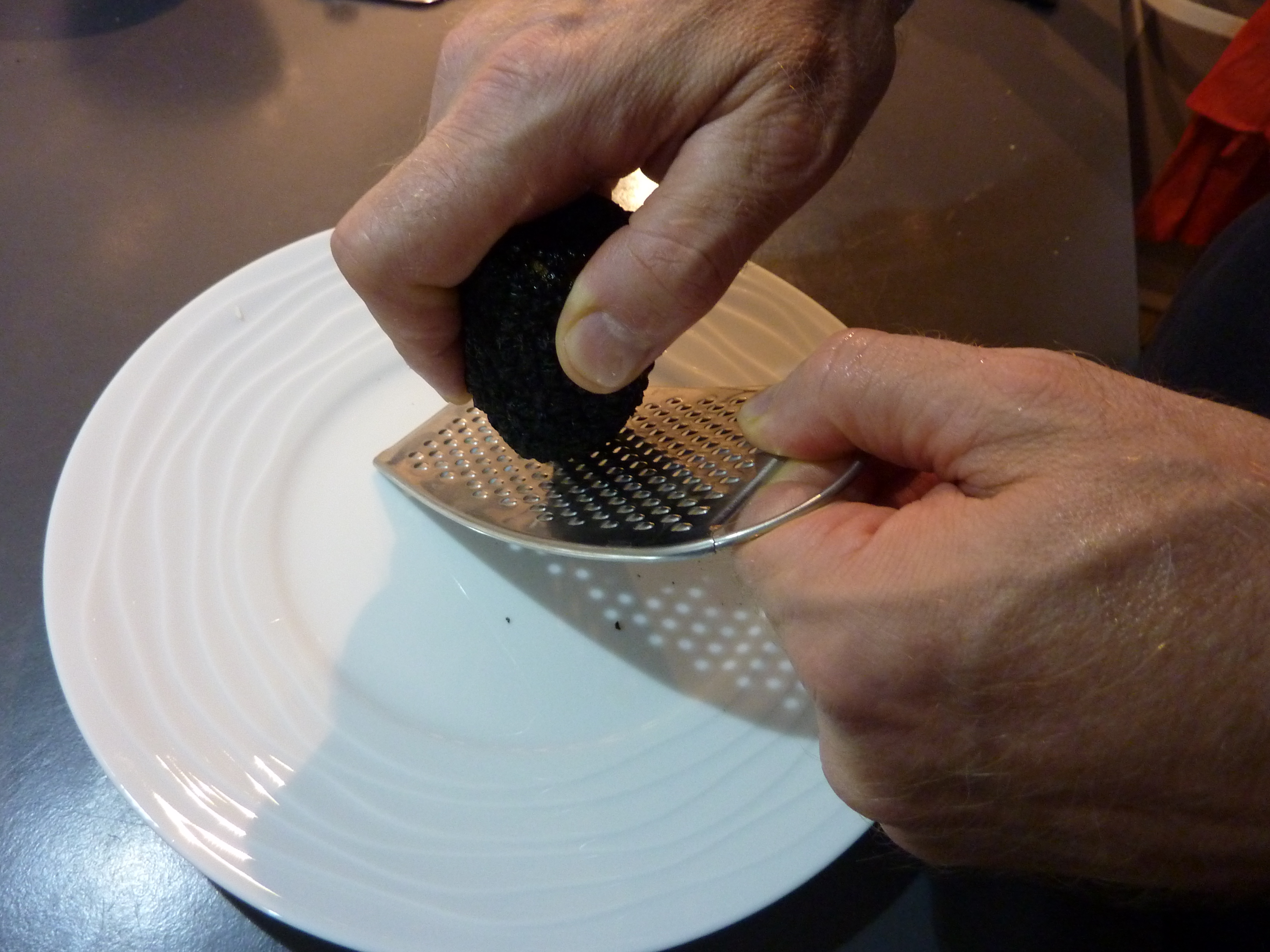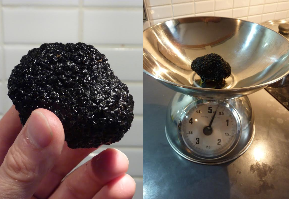 A Gubbio, en Ombrie, je me suis procuré du scorzone, car c’était l’été et car c’est la seule espèce – vendue aux environs de 300 euro le kilo – que je peux me permettre. Les sporophores (c’est la partie comestible du champignon), de 5 à 7 cm de diamètre et pesant quelque 70 g. chacun, avaient été déterrés le matin même par un chien truffier dans une chênaie. Je les ai bien nettoyés avec une brosse et les ai congelés. Il paraît que c’est la meilleure façon de les conserver. Mais j’avoue être un complet néophyte en la matière.