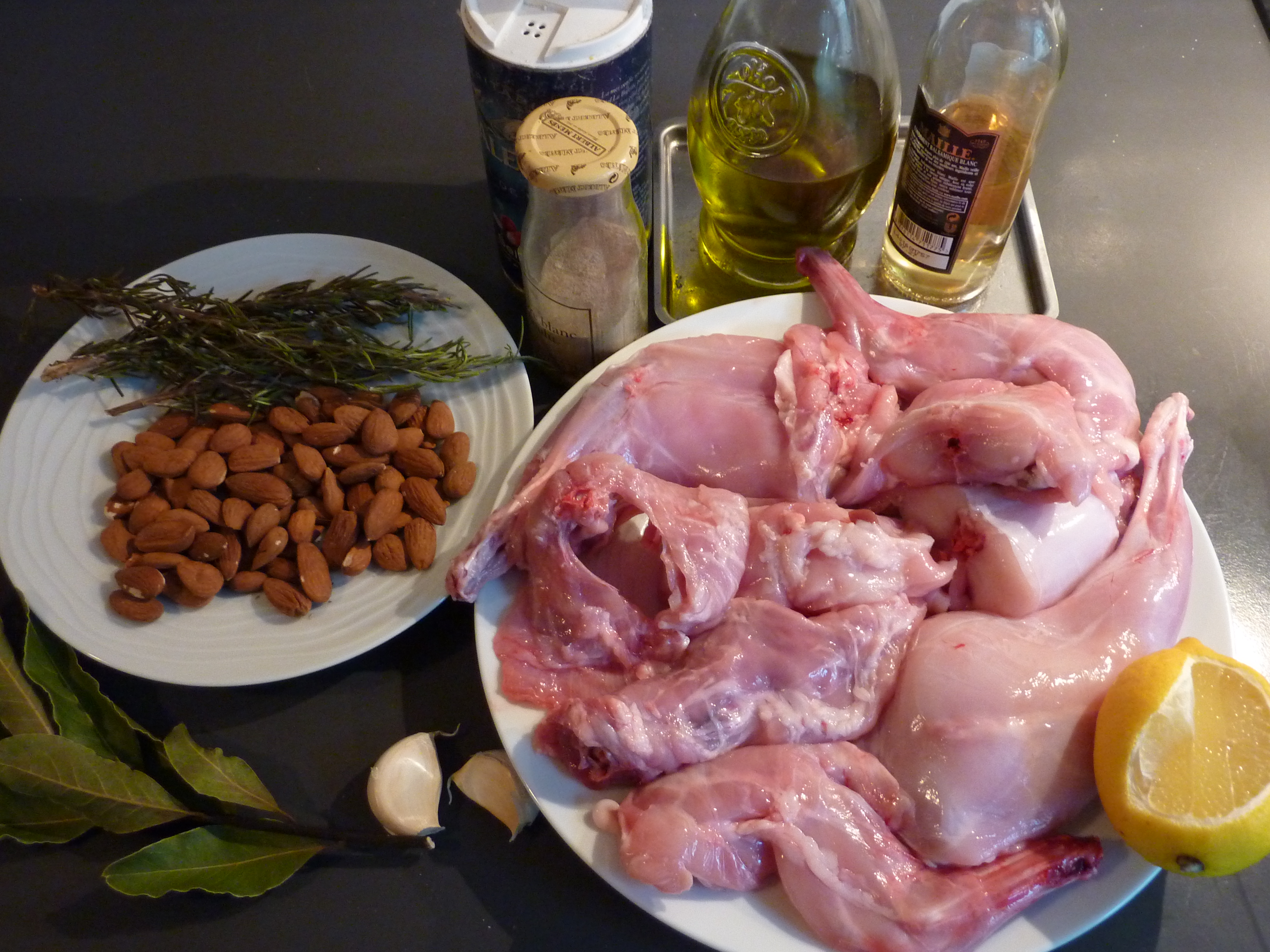 Le lapin aux amandes est un mets très fin et doux au palais, et la recette très simple. Coupez le lapin en morceaux, et procurez-vous du romarin et du laurier, un citron, de l’ail, du sel et du poivre, un cube de bouillon végétal, et bien entendu de l’huile extra vierge d’olive et du vinaigre de vin blanc.