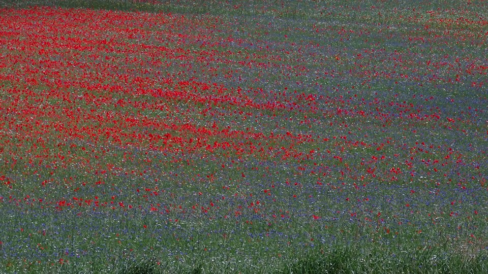 Je suis tout à fait d’accord avec le vieux Chrysippe. D’autant plus que j’ai sous la main une espèce particulière de lentilles : celles de Castelluccio di Norcia, en Ombrie. Un endroit féérique, niché à 1450 mètres d’altitude, habité seulement par quelques 200 âmes, au climat sibérien en hiver (-3 en moyenne…), qui produit des lentilles délicieuses en plus d’être résistantes aux charançons. Leur gousse est très fine, et ne nécessite pas de trempage. Je vous invite à vous rendre dans ce lieu au début de l’été. Après le semis, au moment de la floraison, en juin, le paysage est un tableau impressionniste, avec des myriades de fleurs aux tonalités différentes.