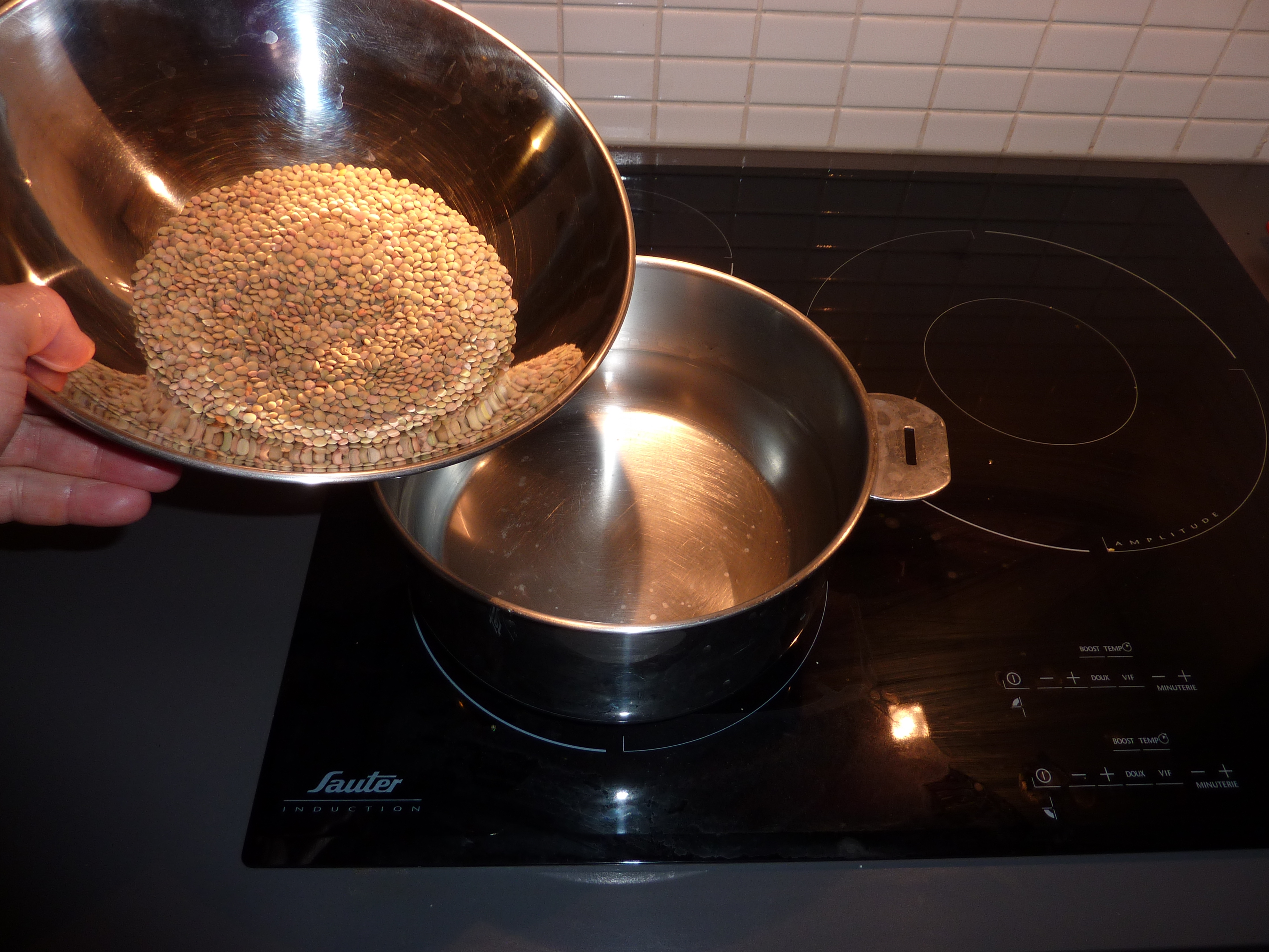 Versez donc le tout dans le bouillon de lentilles, et ajoutez un peu de sel. Attendez qu’elles soient cuites.