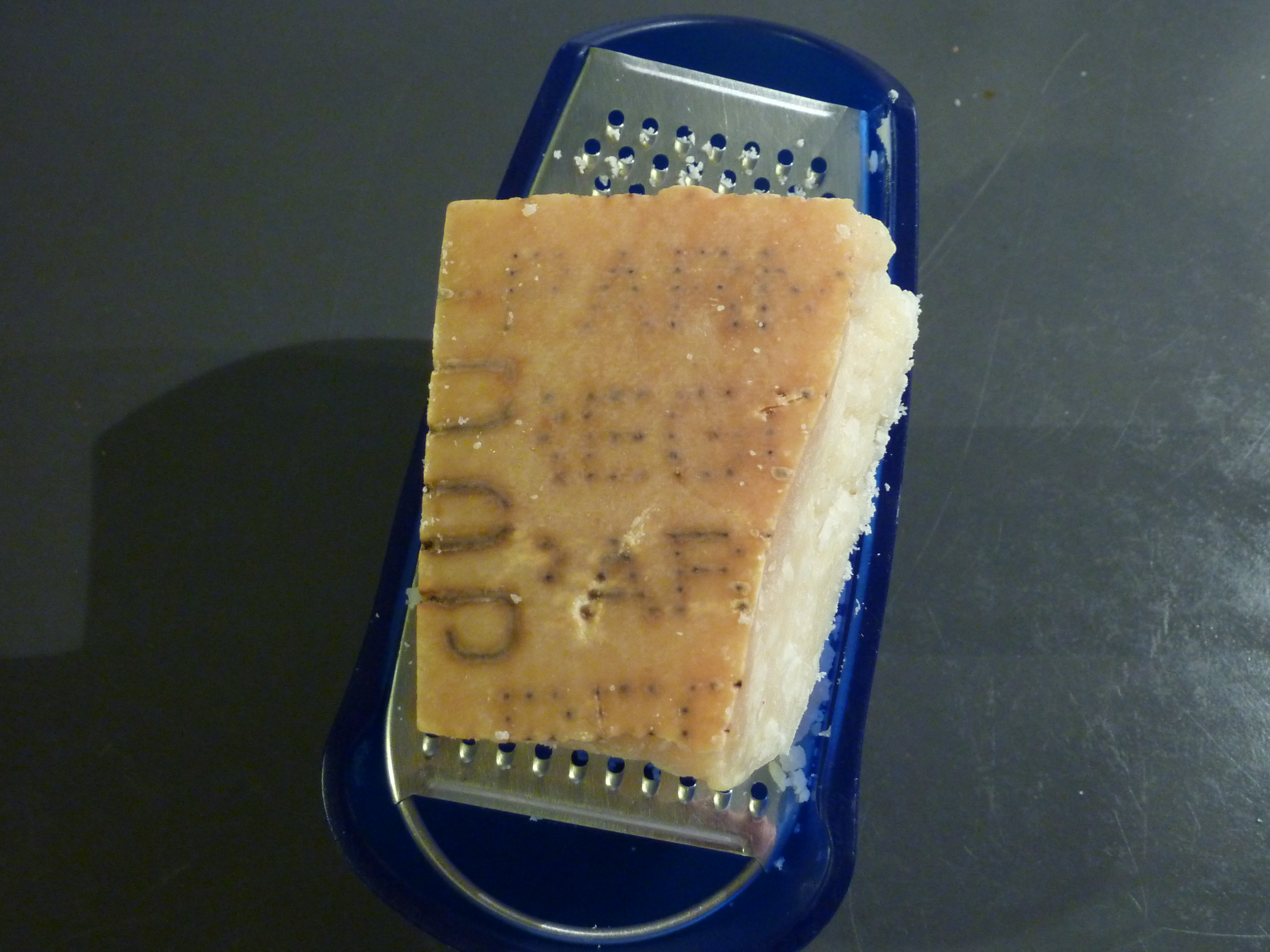 Entre temps, râpez le fromage. N’ayant pas déniché du pecorino, j’ai utilisé du Parmesan affiné trente mois.