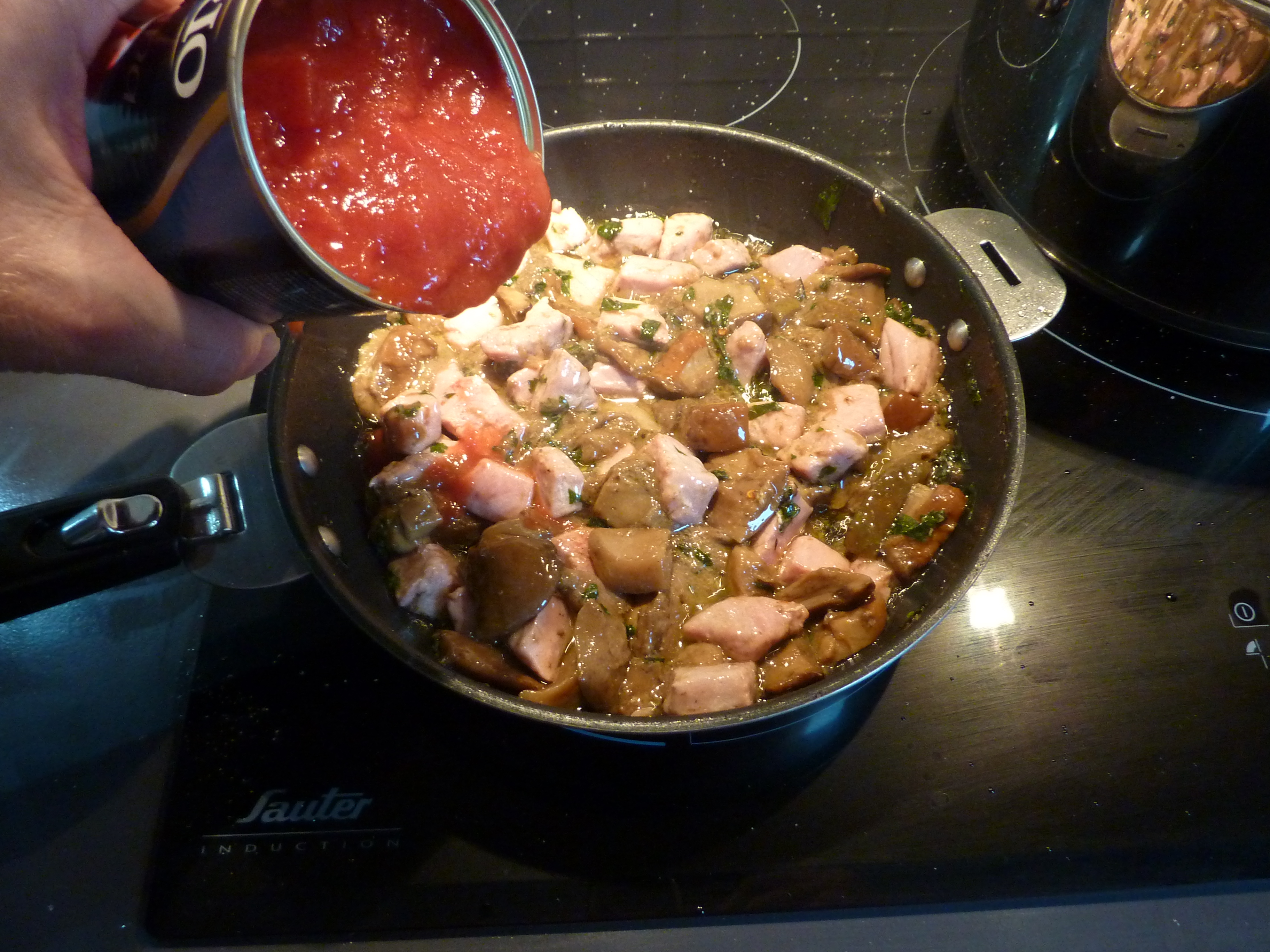 Versez la pulpe de tomate. Laissez-la réduire pendant une vingtaine de minutes.