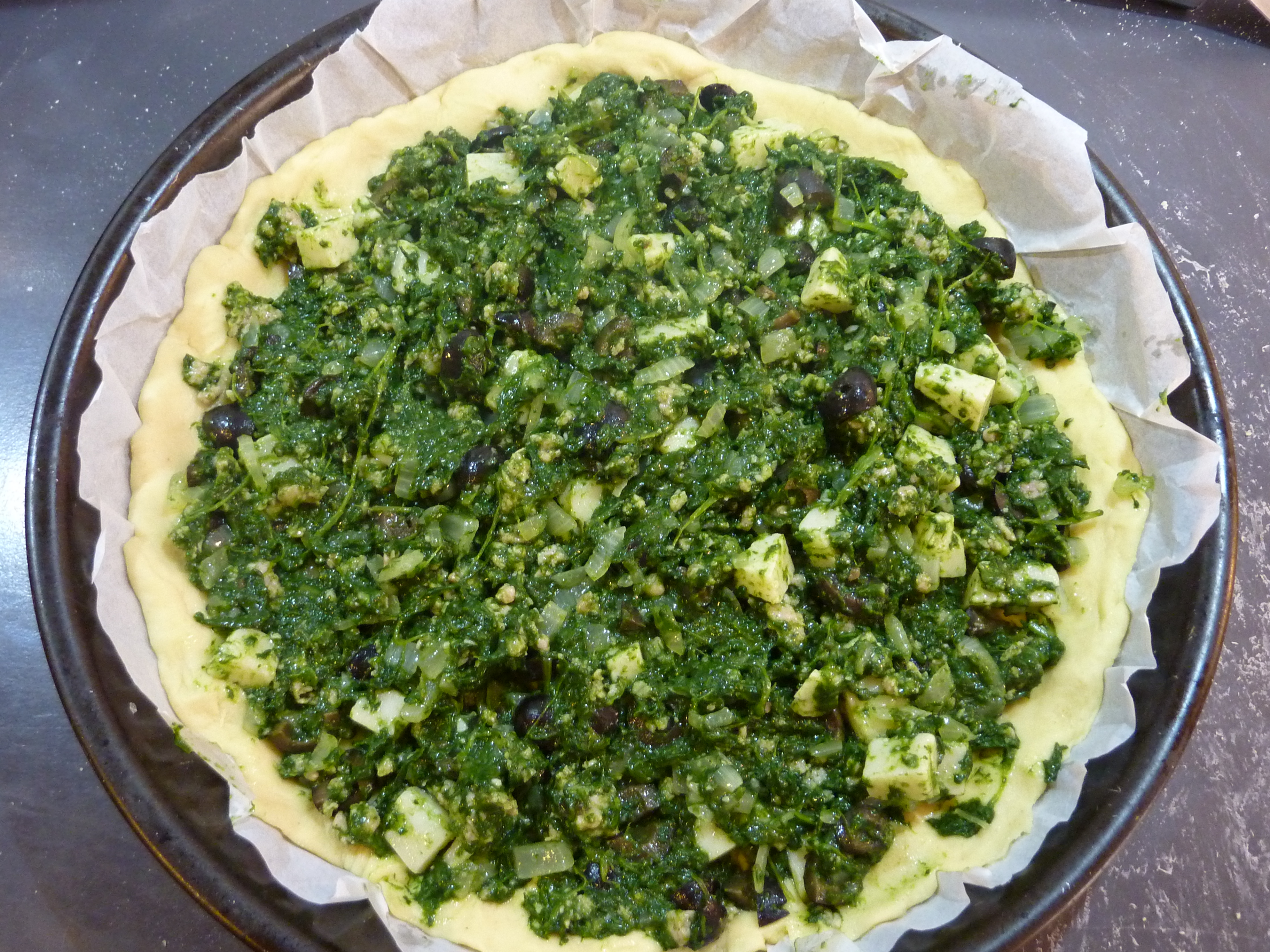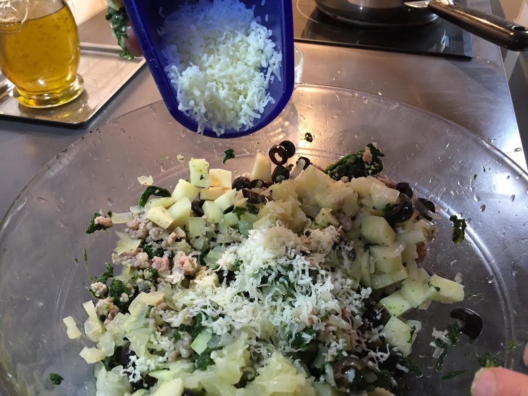 Cette ville, située dans les montagnes du centre de l’île, est un peu en dehors des circuits touristiques, mais offre une cuisine digne de ses consœurs, Catane, Syracuse ou Palerme. La recette est très simple, bien que son exécution soit au final assez longue. Il suffit d’avoir sous la main de la farine de semoule de blé dur, de l’huile extra vierge d’olive, de la levure de bière, un oignon, une paire de pommes de terres, des olives noires, des épinards, de la chair à saucisse, et du fromage de chèvre ou pecorino frais non salé, qu’on appelle tuma (un peu comme la tomme en France). Si on veut exagérer, même des anchois…