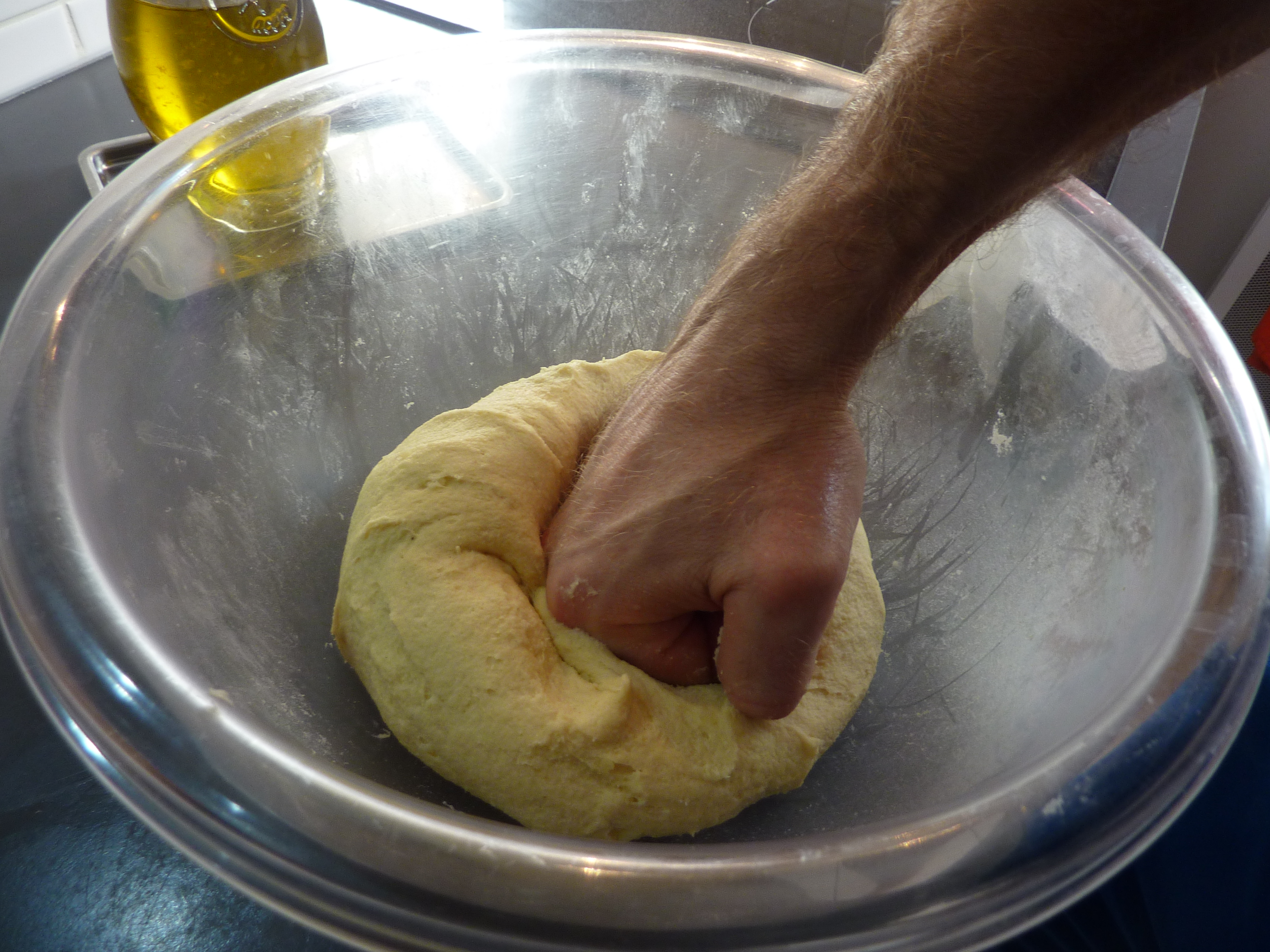 …avant de commencer à pétrir la pâte. A la main, si vous êtes dépourvus, comme moi, de robot, il vous faudra un long moment.
