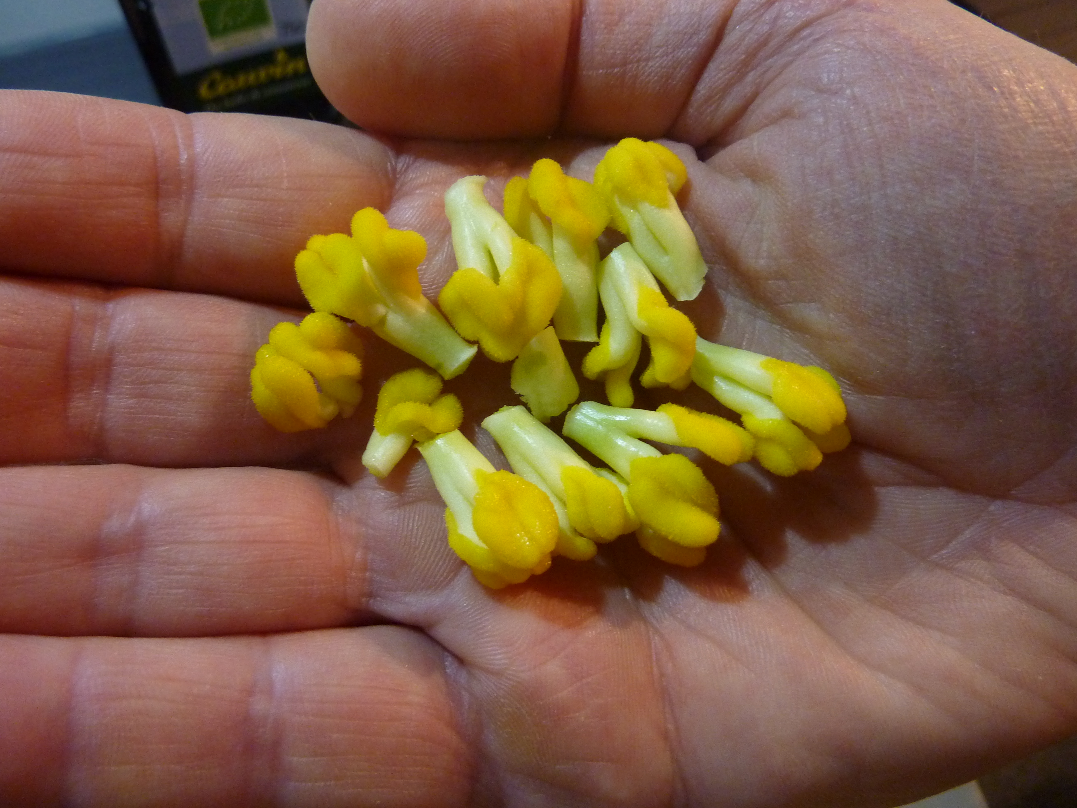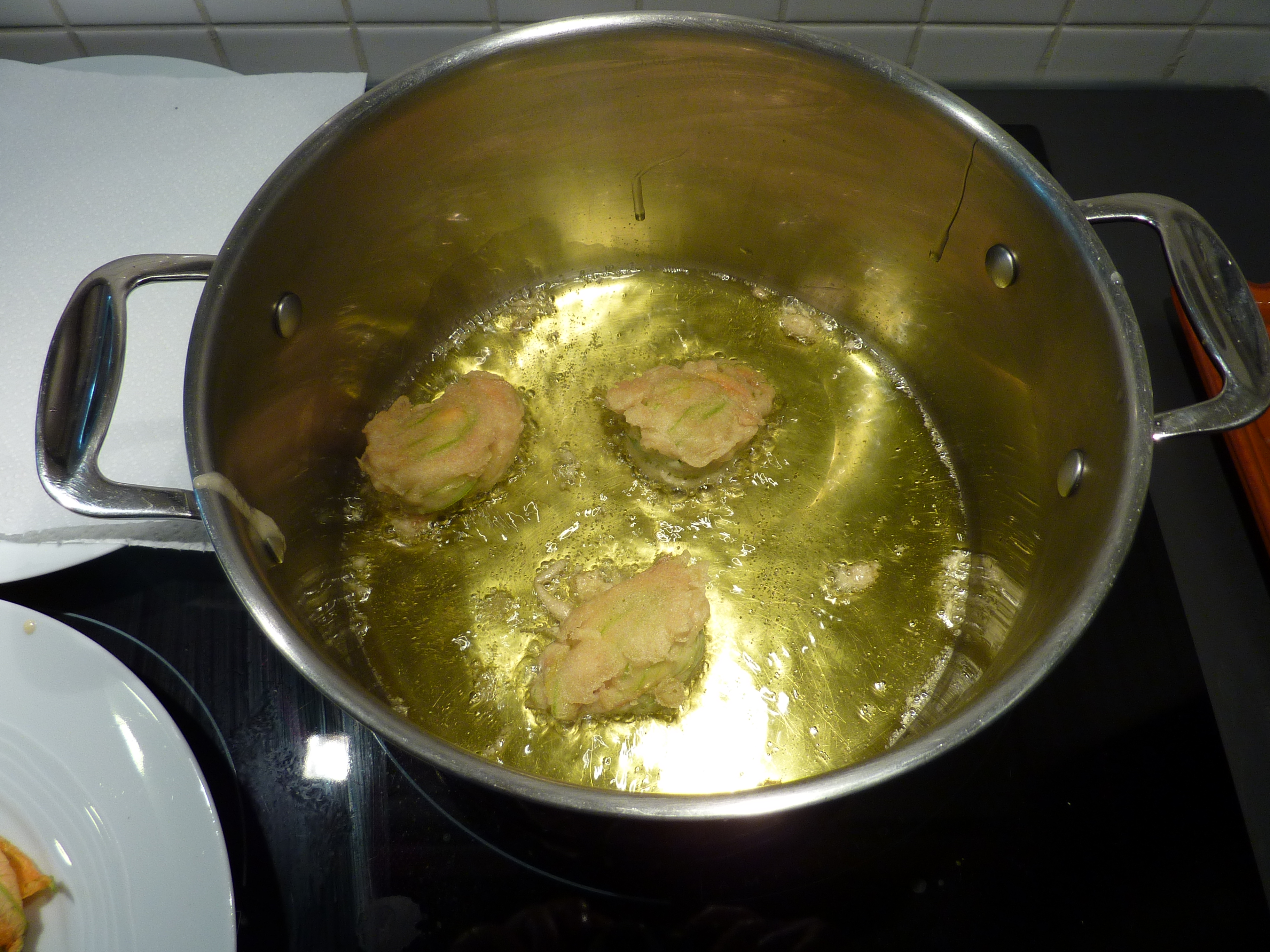 Puis de frire les fleurs dans de l’huile bien chaude (deux ou trois à la fois) jusqu’à qu’elles soient bien dorées (trois-quatre minutes devraient suffire).