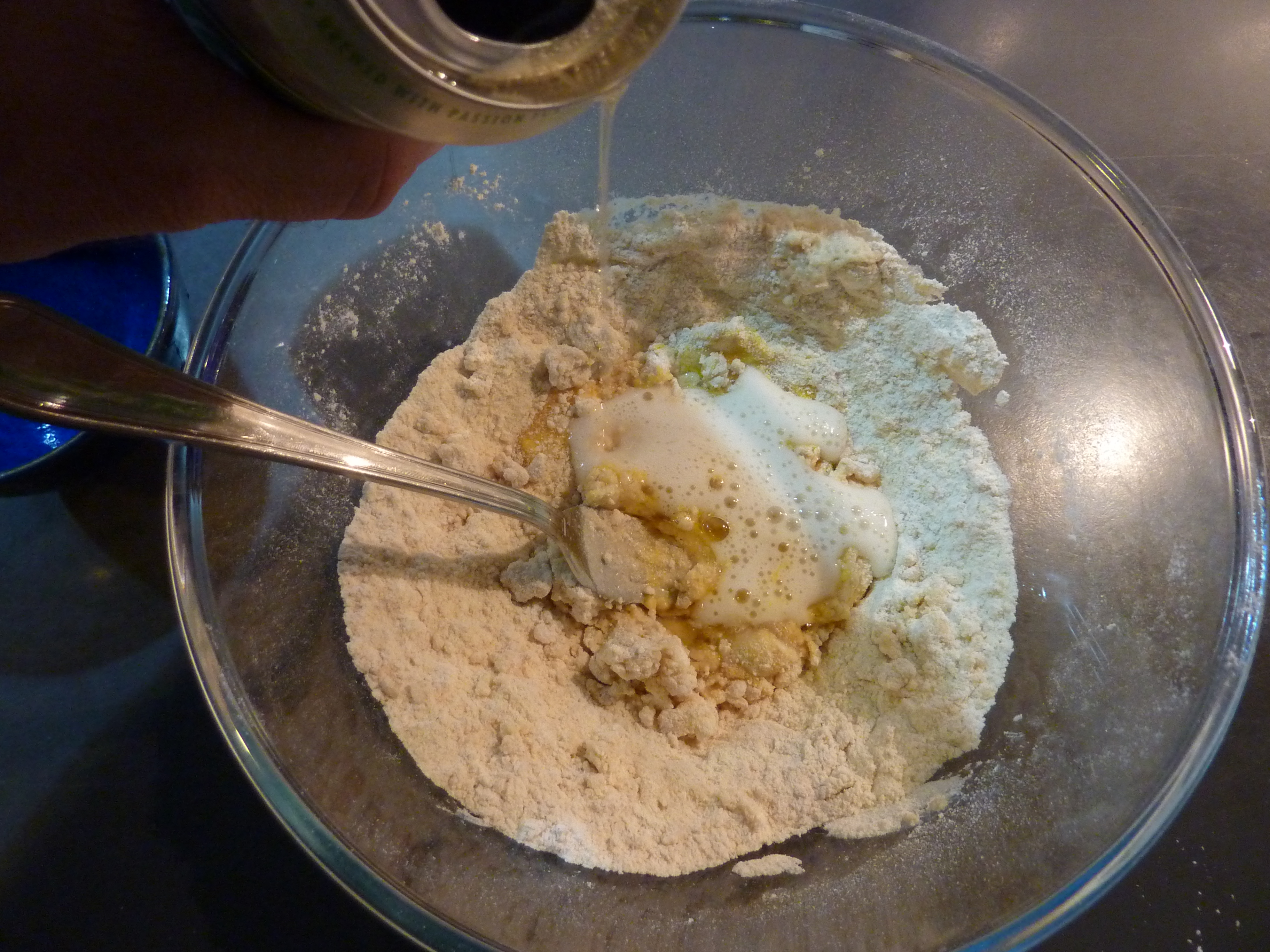 Passons à la pâte à beignets. J’ai opté pour une version très légère, de type tempura (à la japonaise) : pour l’obtenir, j’ai mélangé de la farine de blé dur tamisée, avec un œuf, et versé tout doucement de la bière blonde glacée, en touillant à l’aide d’une fourchette.