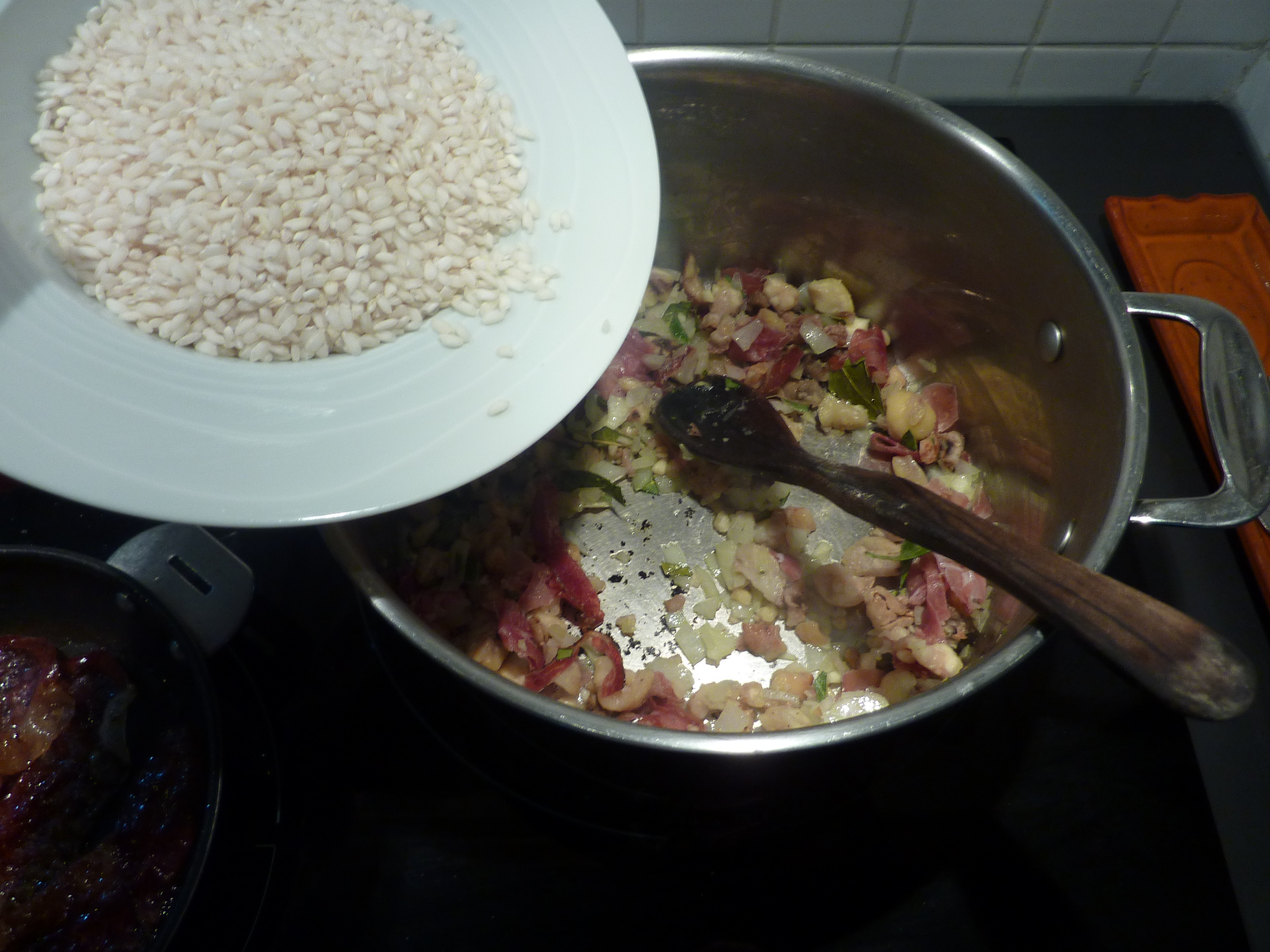 Avant de vous attaquer à la cuisson du riz, faites sauter dans l’huile extra vierge d’olive, les tranches de speck, jusqu’à ce qu’elles soient croquantes. Mettez-les de côté.