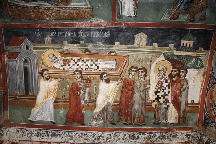 D’où sa popularité précoce auprès de l’Eglise d’Orient, qui célébrait la date de sa mort le 6 décembre 343. Au Moyen Age, cette popularité favorisa un commerce pas tout à fait chrétien, celui des reliques. Et San Nicolas, qui avait la cote auprès des marins, fut vite repéré par deux communautés très actives dans le secteur du commerce (et du piratage) : Bari et Venise.translazione