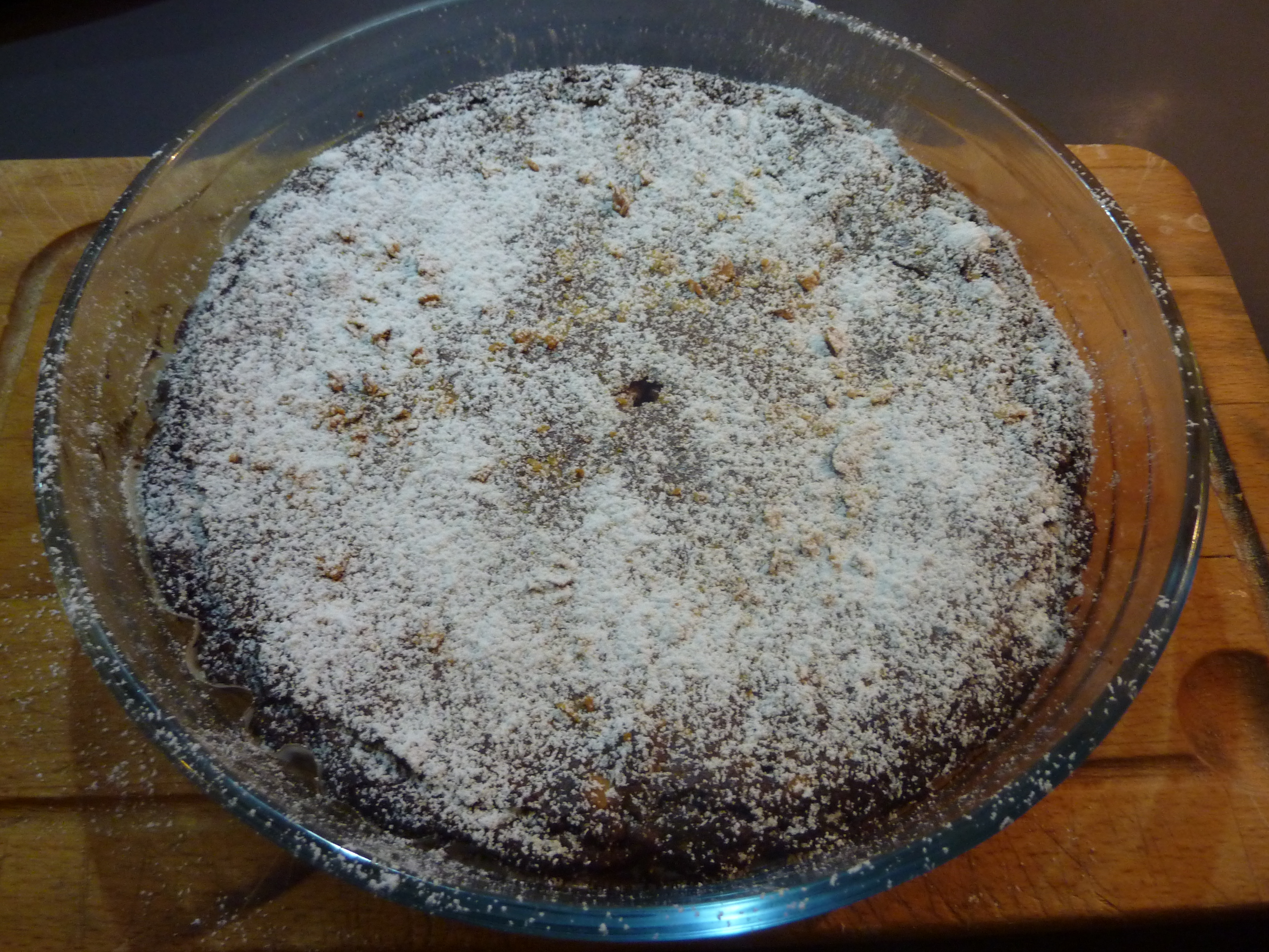 Mettez au four (préchauffé à 180°), pendant trois quart d’heure. La tarte ne doit pas être trop cuite. Une fois la cuisson terminée, sortez le plat, et saupoudrez la surface avec du sucre glace.