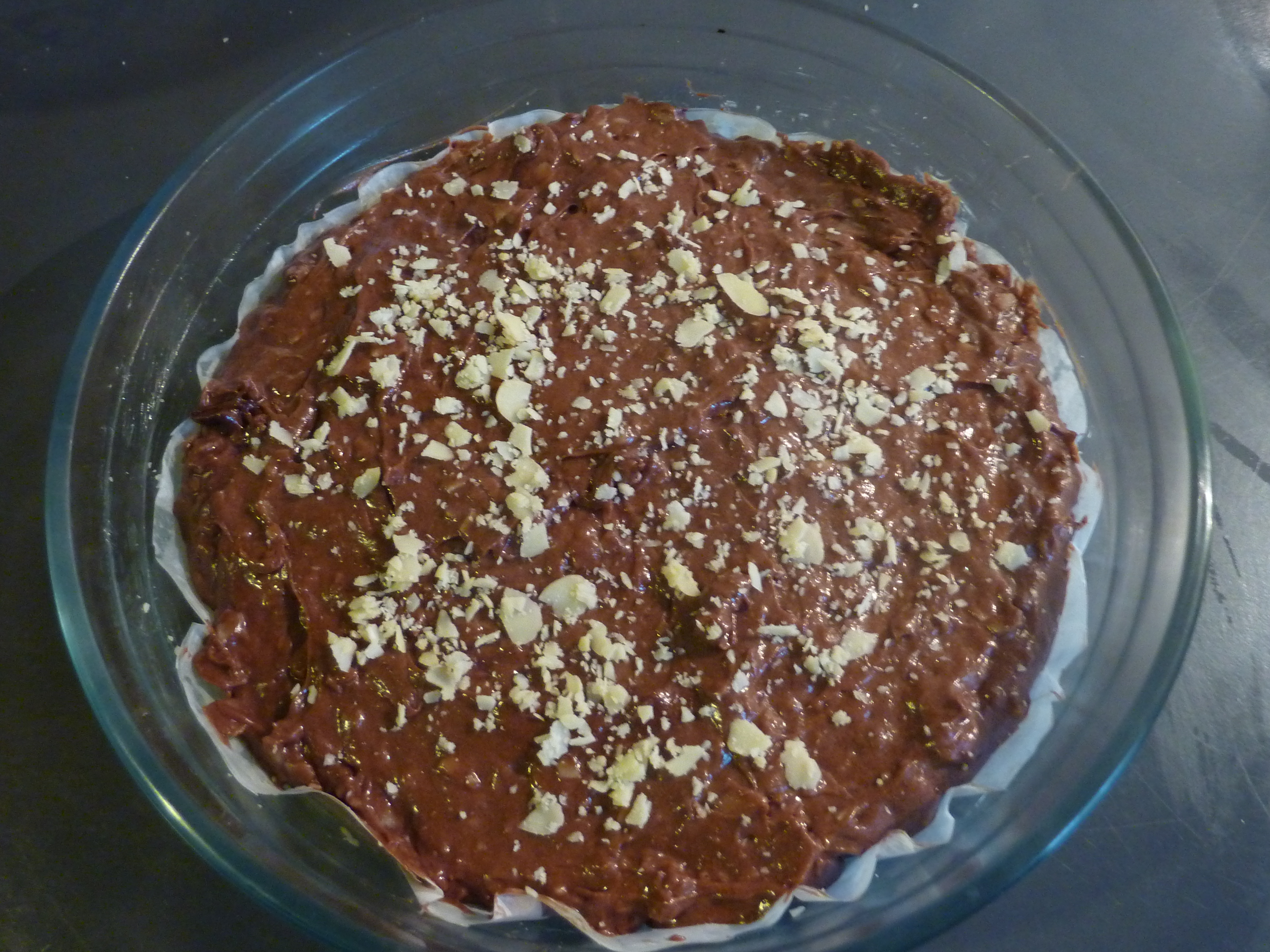 Encore quelques morceau d’amande sur la surface, qu’on aura eu cure de aplatir à l’aide d’une spatule.