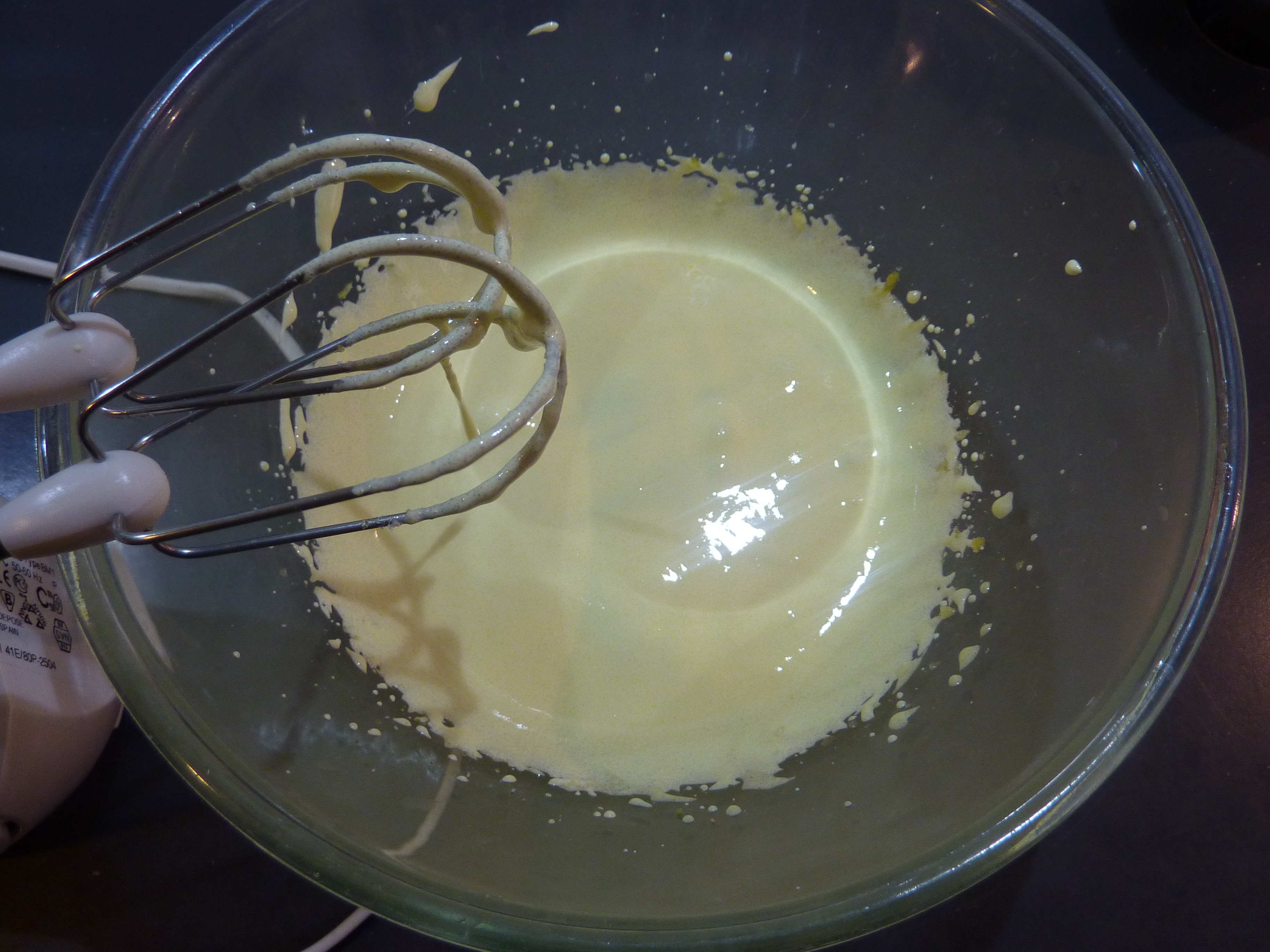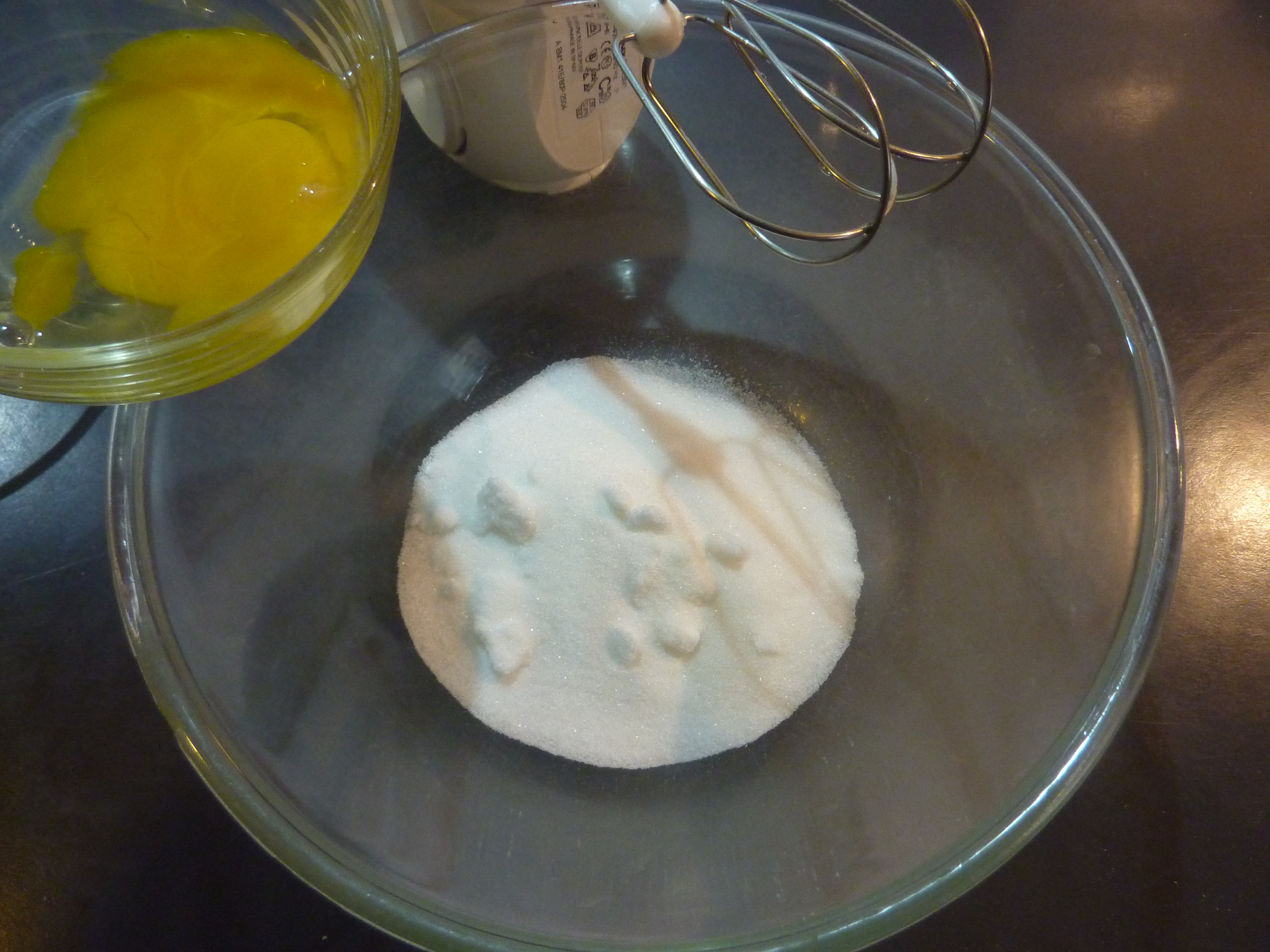 Même opération pour les jaunes, à fouetter avec le sucre.