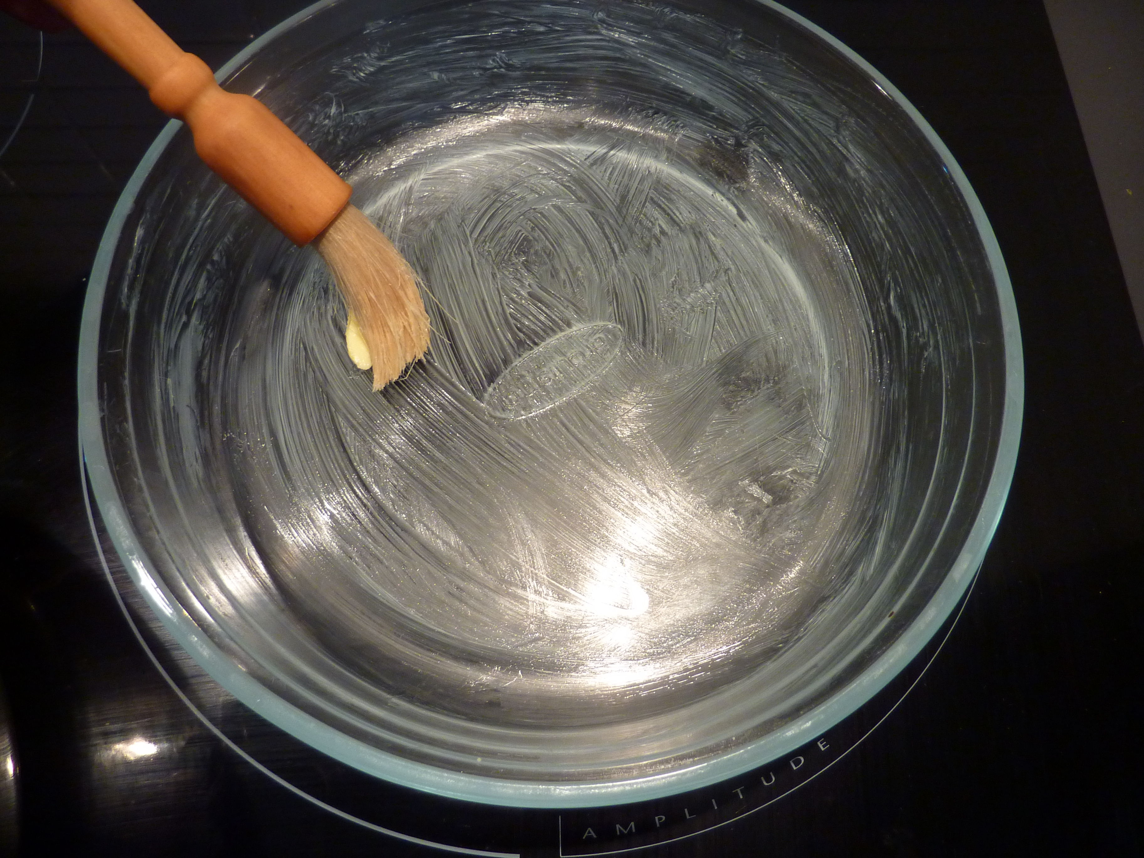 Avant de mettre le papier, passez du beurre avec un pinceau sur le fond et les parois du plat pour mieux faire glisser le tout.