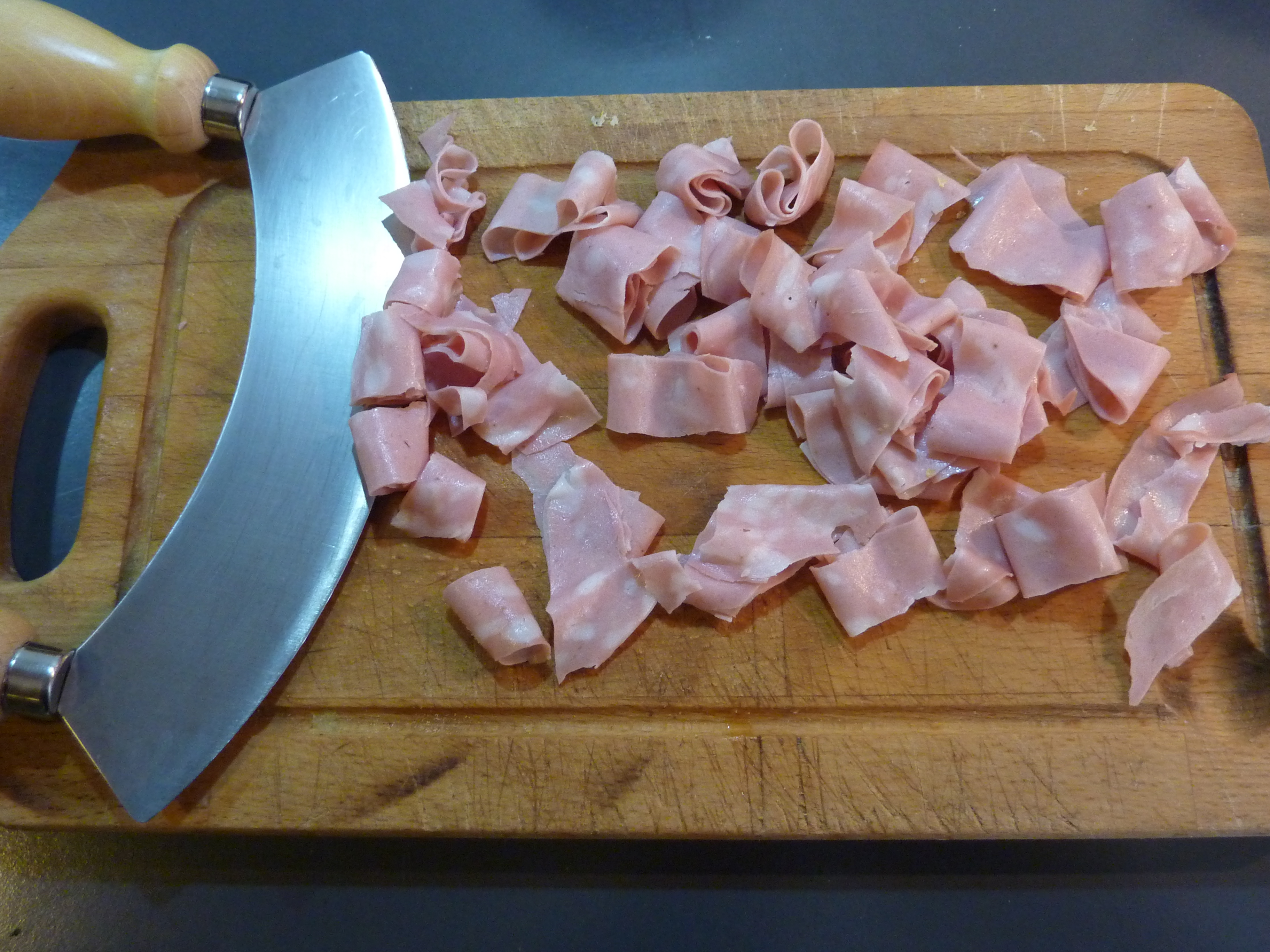 La mortadella devra être hachée et mise de côté.