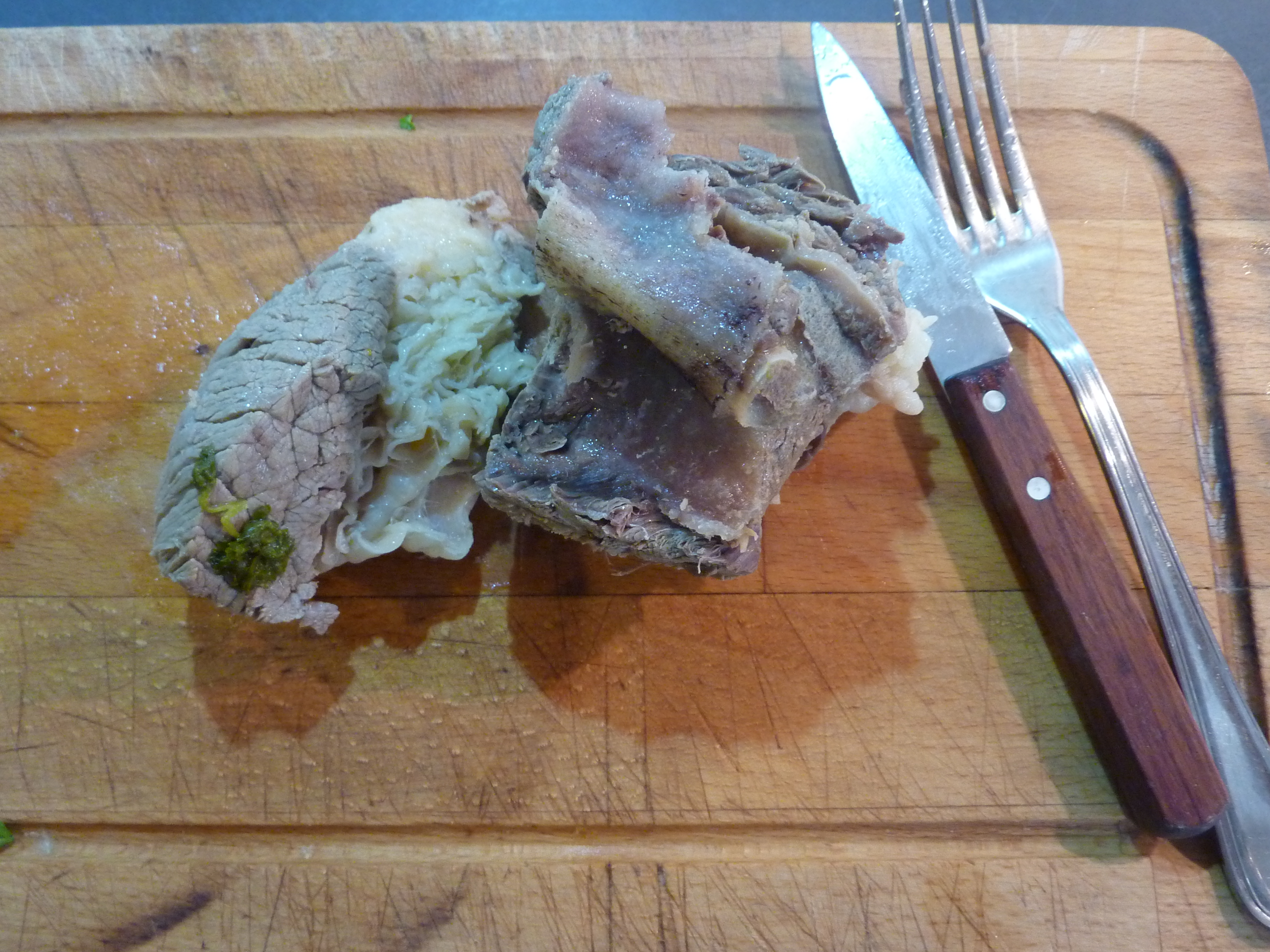 La viande devra être détachée de l’os une fois la cuisson terminée, les cartilages et les tendons écartés. Mieux vaut d’ailleurs demander un morceau plus gros au boucher que celui requis pour la recette car on risque sinon de se retrouver avec trop peu de viande.