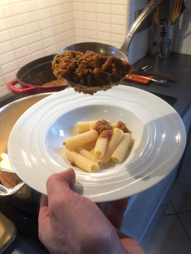 Dernière étape, les pâtes. Les puristes du dimanche choisiront sans détour les ‘ziti‘ (les fiancés), mais à Paris il est trop compliqué d’en trouver. J’ai donc opté pour une forme similaire (s’appellent tortiglioni)…Capture d’écran 2019-10-23 à 18.58.28
