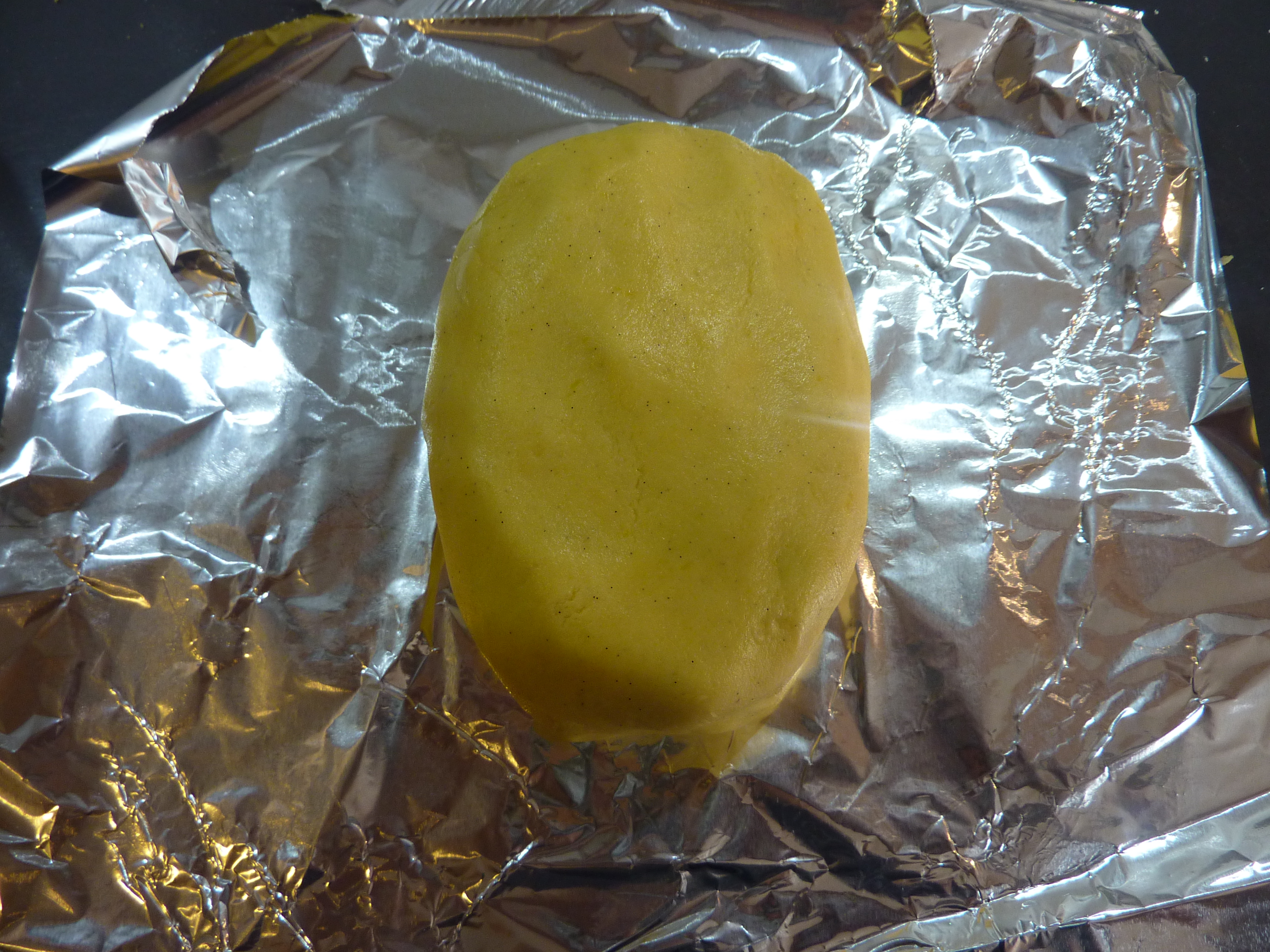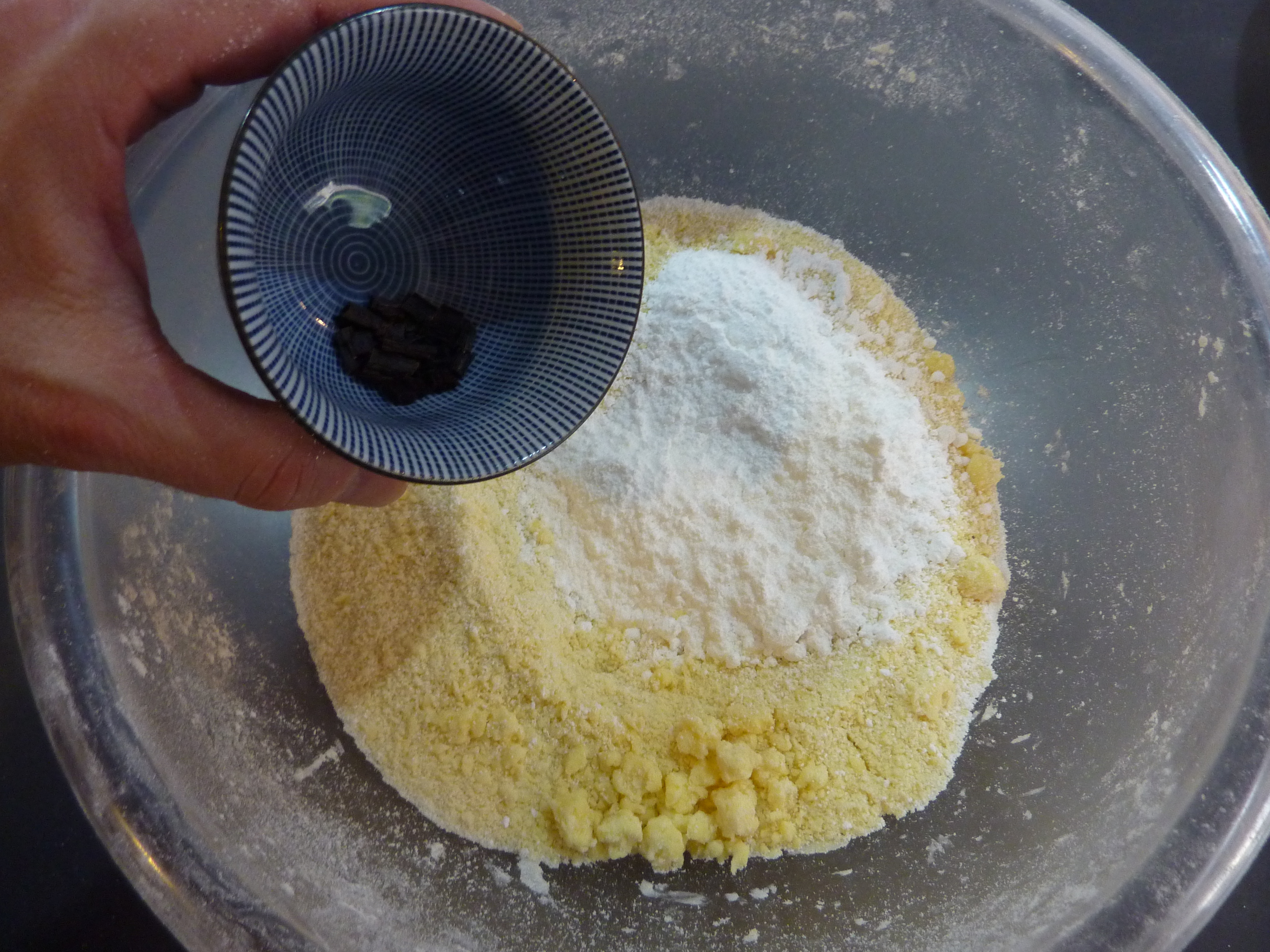 Pour la pâte : 245 gr. de farine 45; 3 jaunes d’oeuf, 120 gr. de beurre; 80 gr. de sucre glace, 1 gousse de vanille