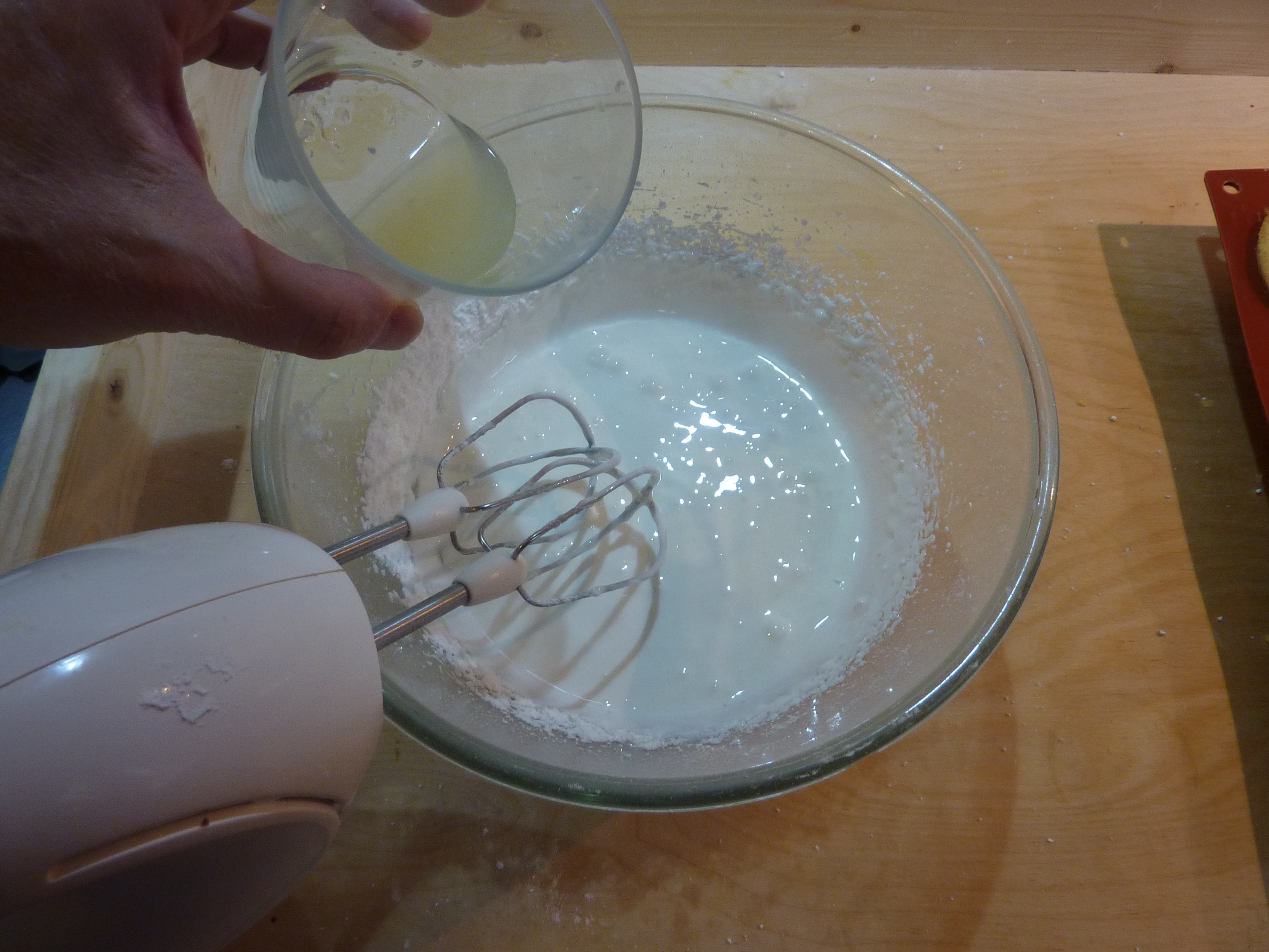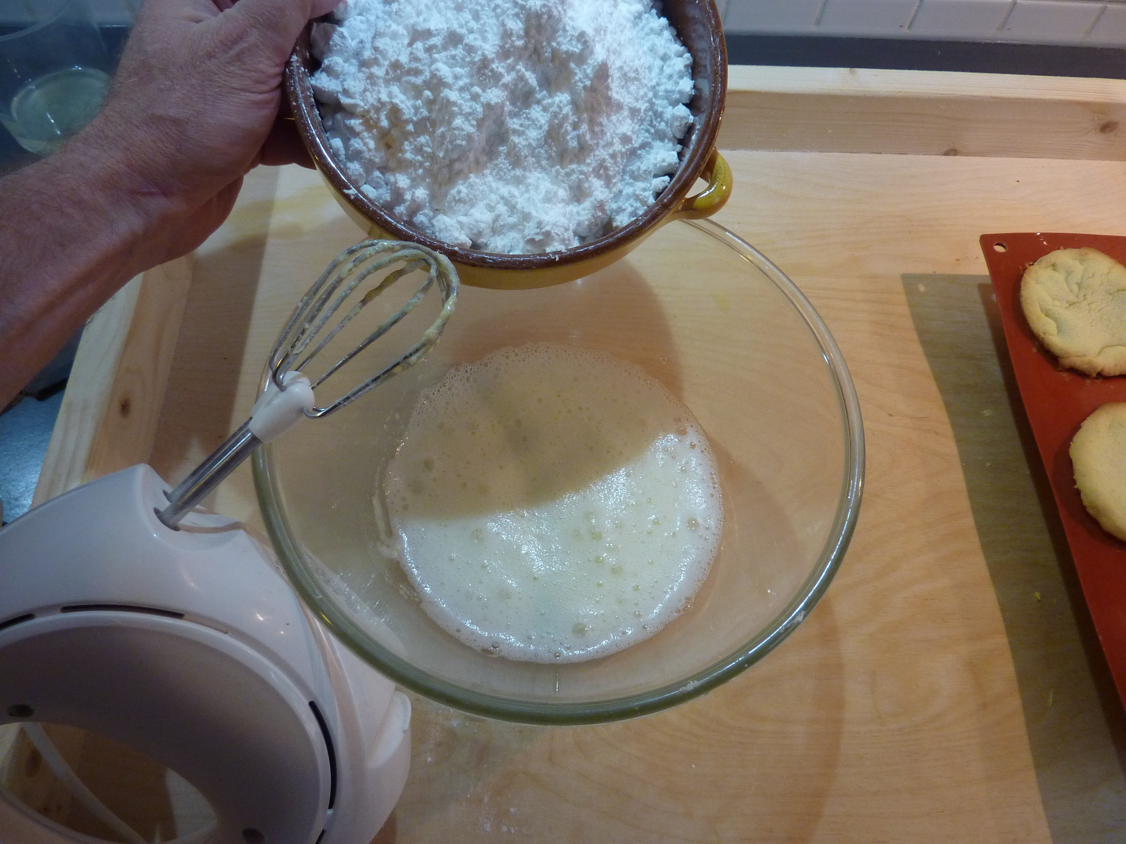 A moitié de l’opération, ajoutez le sucre glace (tamisé), une cuillère à la fois.