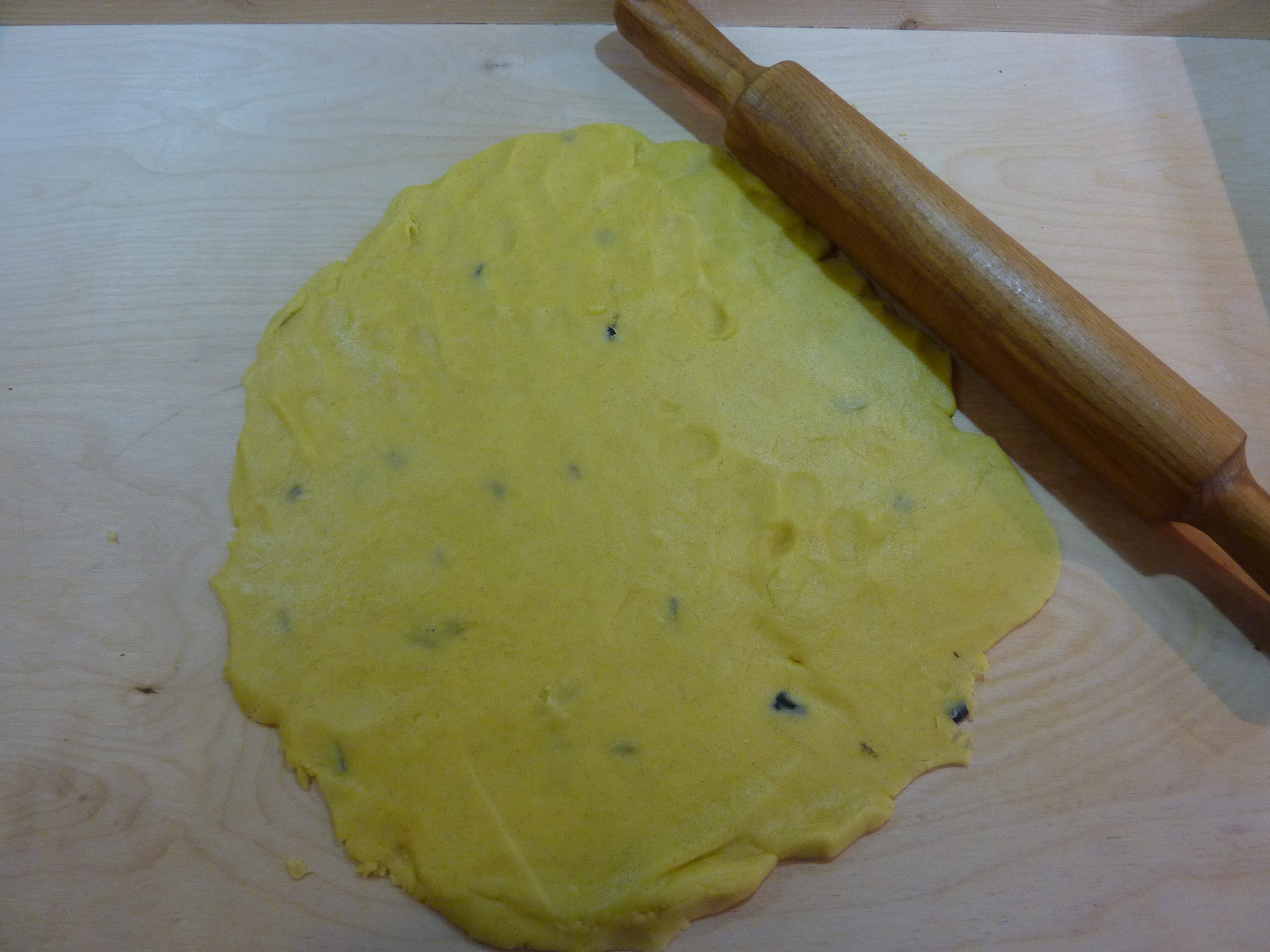 Sortons maintenant le pain de pâte du réfrigérateur, pour l’étaler à l’aide d’un rouleau à pâtisserie.