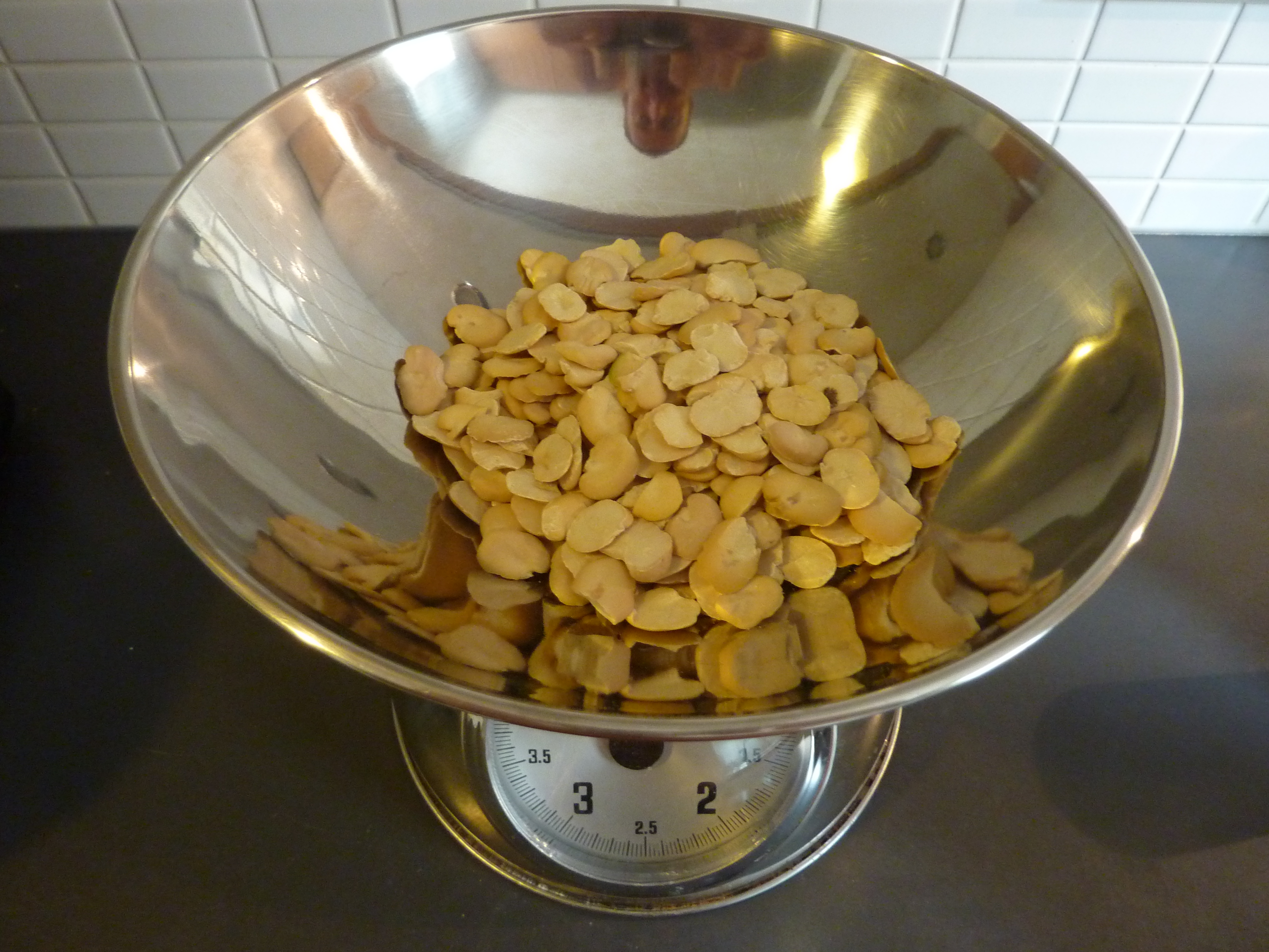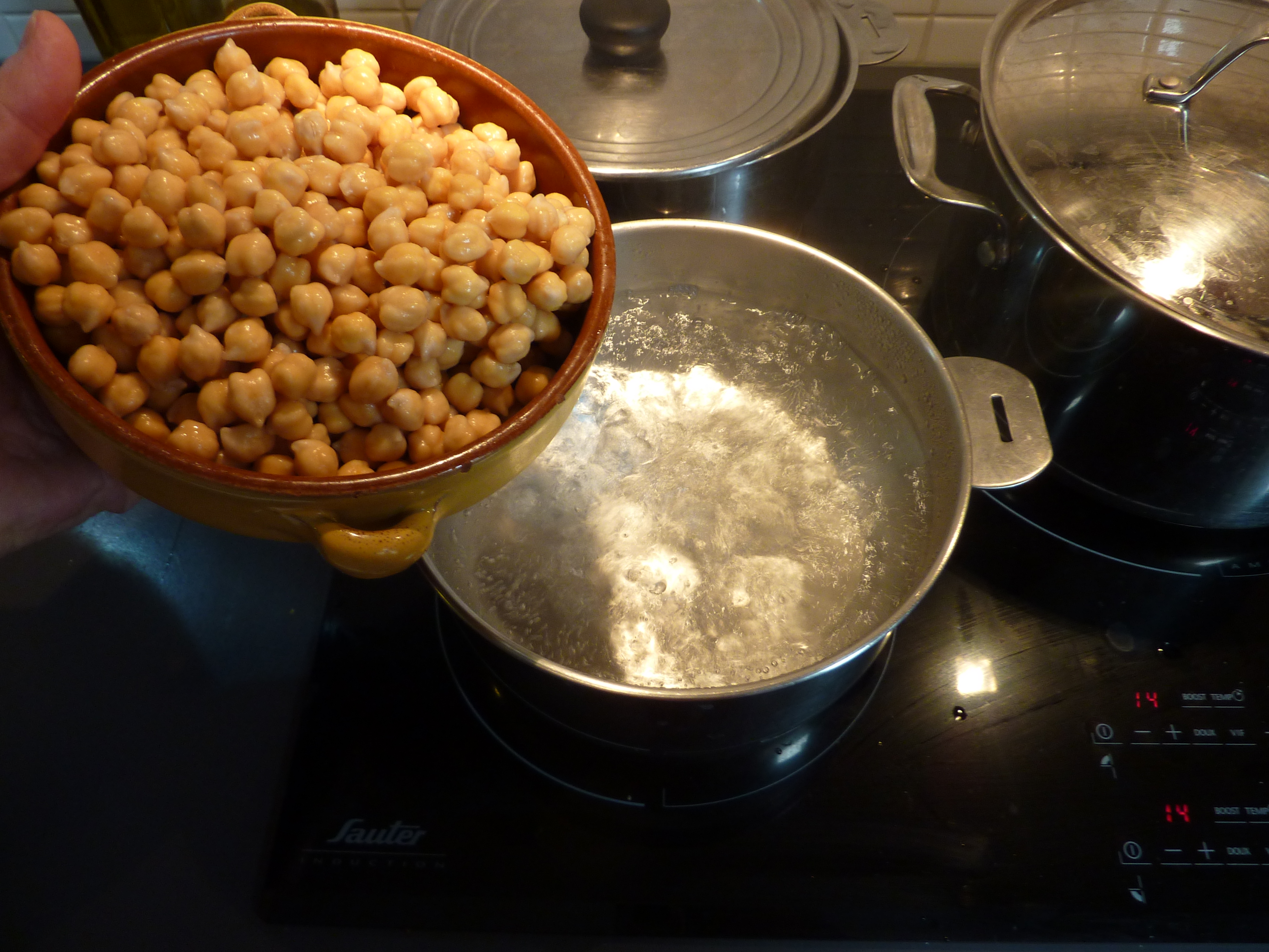 Pour cette recette, il faut d’abord faire tremper (une nuit avec du bicarbonate alimentaire) les fèves (séchées et décortiquées) et les pois chiches, avant de les faire bouillir, dans des casseroles séparées, le temps nécessaire à leur cuisson, avec de la marjolaine et une pincée de sel.