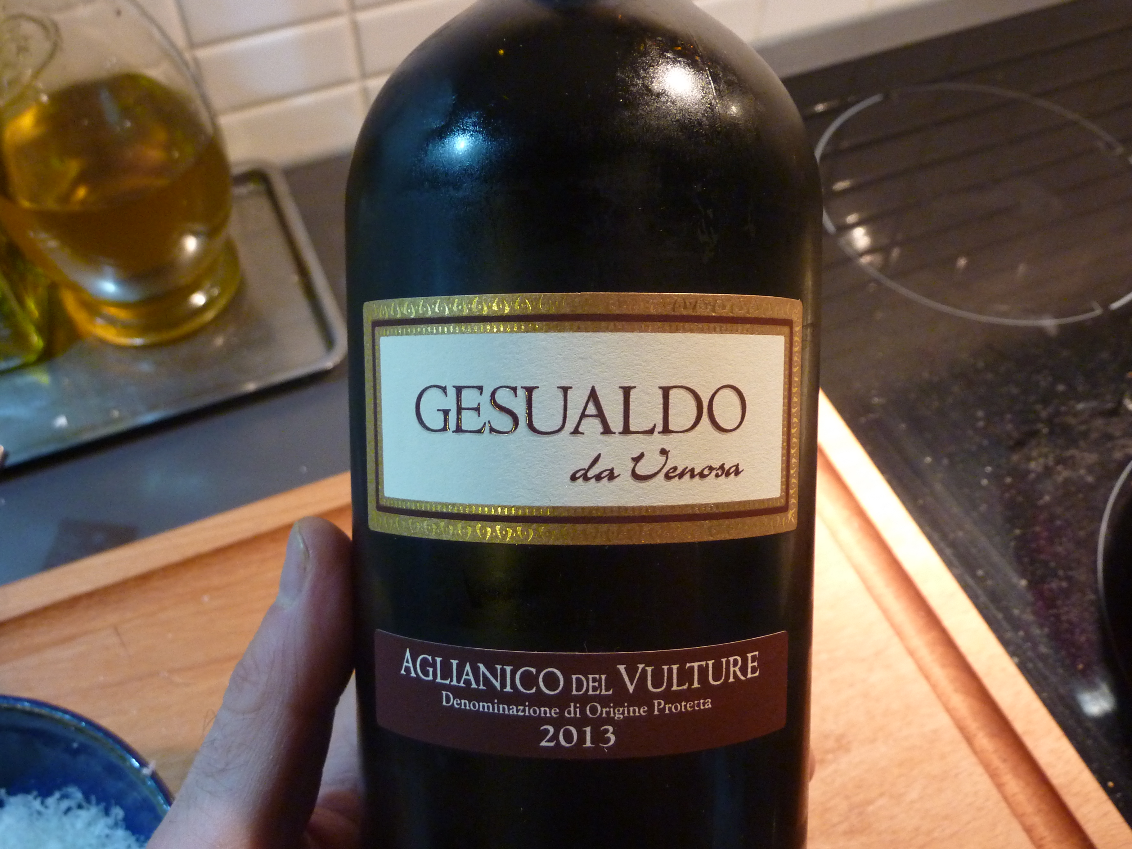 Et pour ce qui concerne le vin, là aussi je me suis fait plaisir. J’ai passé commande pour un cépage cultivé à Venosa, à environ 70 km de Potenza, entre la Basilicate et les Pouilles. Il s’agit du très ancien Aglianico del Vulture, un rouge puissant cultivé entre 200 et 700 mètres d’altitude, à la hauteur de ce ragoût.