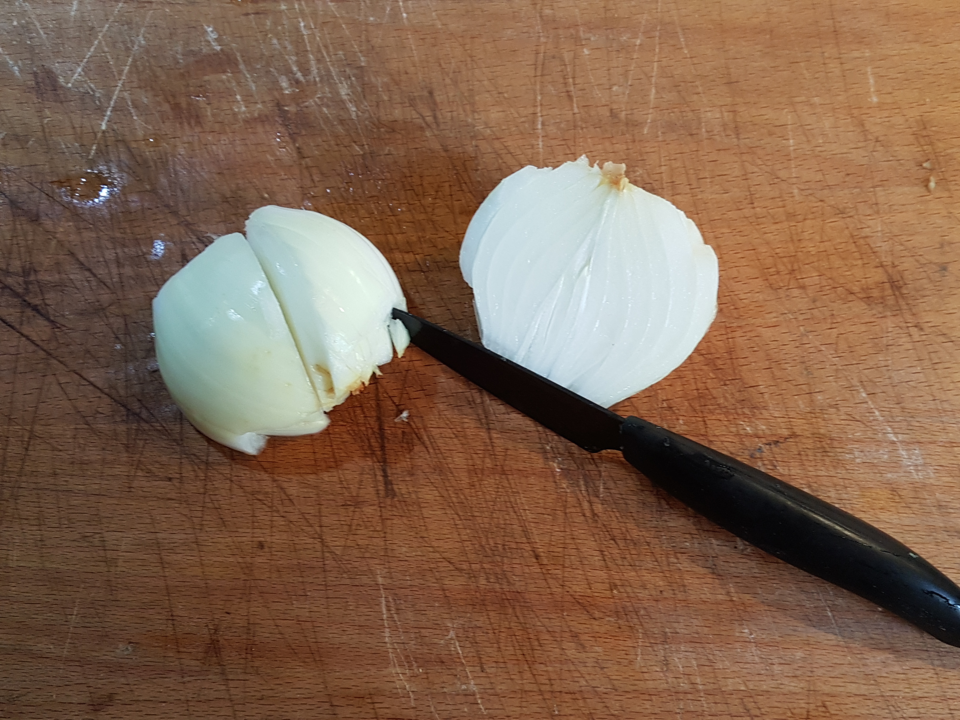Première étape : lavez et émincez l’oignon (blanc ou rouge).