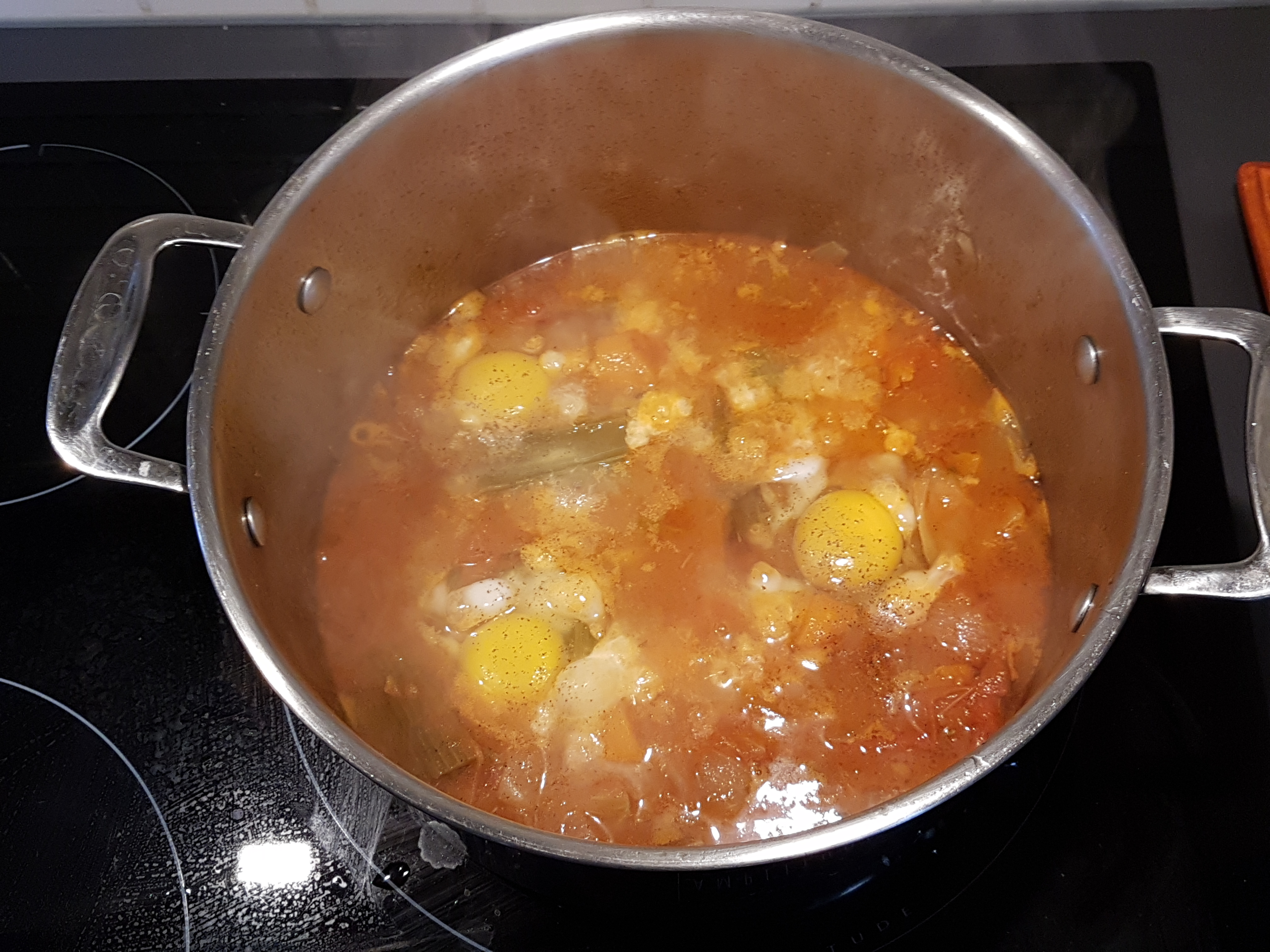 Cassez les oeufs et ajoutez-les (sans les abimer) dans l’acqua cotta. Attendez quelques minutes.