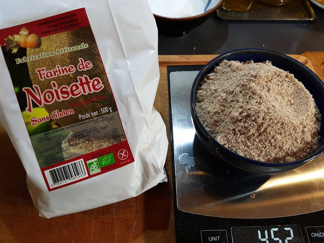 Puisque je ne suis pas pâtissier, j’ai opté pour une version easy de la recette originale, en ayant recours aux ingrédients disponibles à Paris. Chose plus facile à dire qu’à faire, étant donné que pour avoir de la farine de noisettes, j’ai dû la commander sur Amazon, en provenance du Périgord…