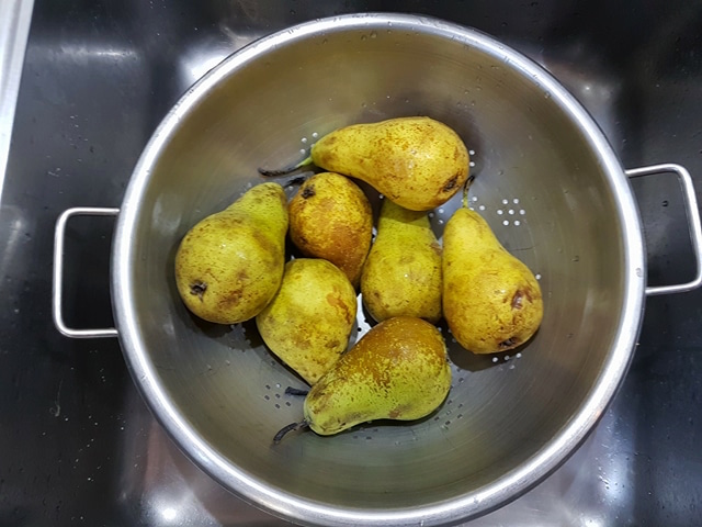 Entre temps, occupez-vous des poires. N’ayant pas de « pennate », j’ai choisi des Williams, parmi les rares poires présentes au marché d’Aligre en ce novembre de grisaille parisienne.