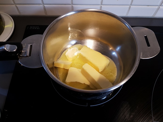 Faites fondre le beurre dans une casserole à feu doux, et gardez-le de côté.