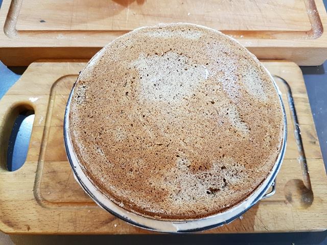 Et partagez le tout dans deux moules à manqué démontable avec charnière (déjà beurrés et saupoudrés de farine), en vous aidant toujours avec la spatule. Faites cuire au four à 180° pendant 15 minutes, et vous obtiendrez deux biscuits souples et parfumés.