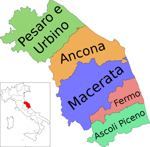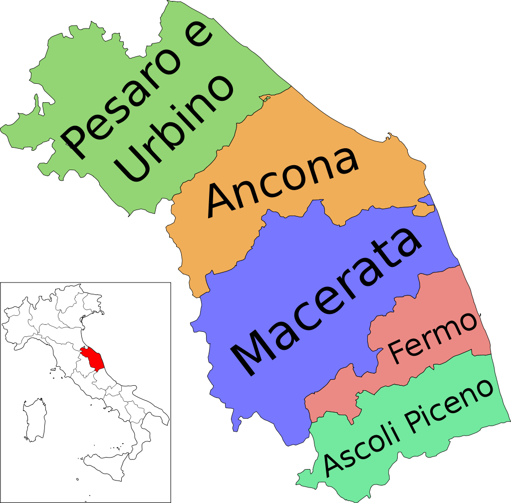 Parmi les villes principales, Ancône, sur la côte, a gardé les traditions maritimes de ses fondateurs grecs. Urbino et Pesaro ont tendance à suivre l’art culinaire de l’Emilie Romagne, plus au nord. Fabriano (située dans la province d’Ancône, mais à l’intérieur), avec sa charcuterie de haute gamme, penche du côté de ses voisins ombriens, sur les collines des Apennins. Fermo s’est fait une spécialité des maccheroncini à l’oeuf de Campofilone accompagnés de sauces de viande et de poisson. Ascoli Piceno, fameuse pour ses olives farcies, a déjà un pied dans les Abruzzes et regarde plutôt vers le Sud.