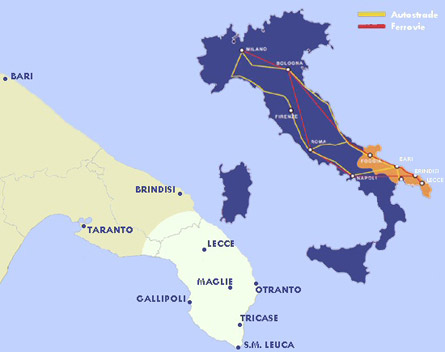 En voici un exemple concret. Pour bien comprendre le contexte, plongeons-nous dans le Salento, le « talon de la botte italienne », sous-région méridionale des Pouilles, comprise entre les provinces de Brindisi, Lecce et Tarente. Une terre entourée par la mer, d’où son nom latin, selon le grammairien romain Verrius Flaccus (De Verborum Significatione, Lib. XVII), très renfermée sur elle même, soumise au contrôle de la Sacra Corona Unita (la pègre locale), aux voies de communication peu nombreuses et mal entretenues, où vignes et oliveraies s’étendent à perte de vue, et où le dialecte local prend souvent la place de l’italien (et je ne vous parle même pas de la connaissance d’autres langues).