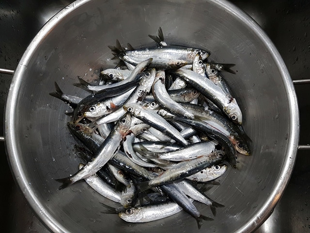 D’abord, bien évidemment, il s’agit de laver à l’eau courante les petits poissons en question.