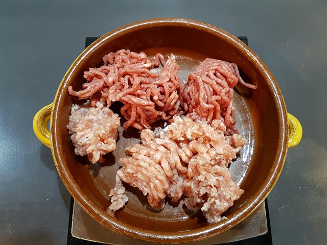 D’abord, j’ai opté pour des paupiettes à base de deux types de viande hachée : veau et porc (on pourrait aussi y ajouter du boeuf).