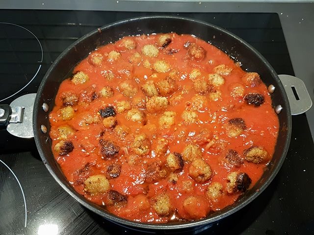 Il suffira de dorer une gousse d’ail et un peu d’oignon dans de l’huile extra vierge d’olive, avant d’y mettre les boulettes de viandes, l’une après l’autre, pendant environ trois minutes à 180°C, en les retournant à l’aide d’une spatule. Entre temps, on préparera une sauce tomate.