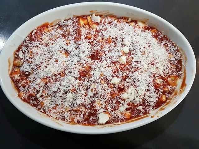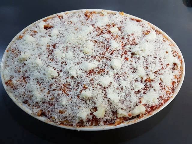 Le plat doit cuire au four à 180°C, pendant une demi-heure. Il est coutumier de faire brûler la première couche de pâtes, pour le plaisir de les sentir craquer sous la dent.