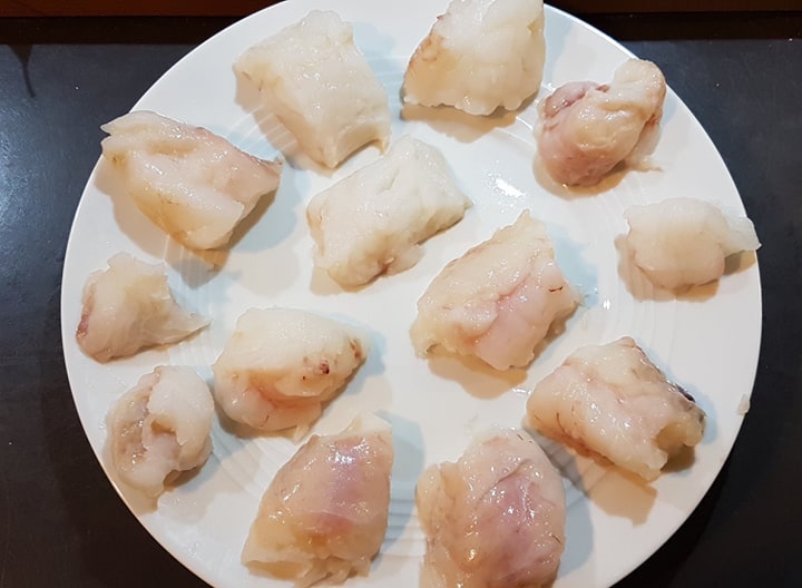L’étape suivante prévoit le partage des filets en morceaux de la taille d’un oeuf.