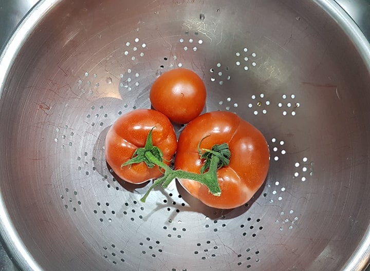 Derniers ingrédients, les tomates. A couper en petits morceaux.