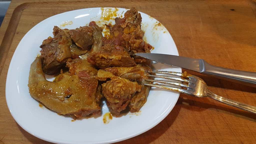 Revenons au ragoût de pigeon. La chaire de la bête est désormais prête à être détachée des os. En suite, il faudra émincer les morceaux.