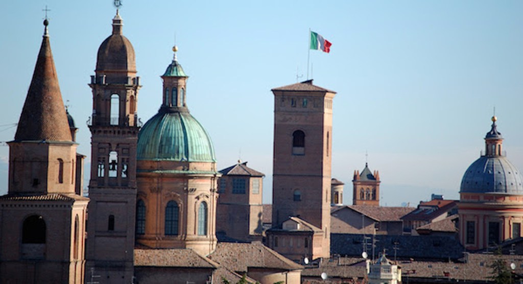 L’une de ces beautés s’appelle Reggio Emilia. Coincée entre Modène et Parme, comme ses rivales est riche en histoire et en recettes de cuisine. Les italiens la connaissaient surtout pour avoir exposée, la première, le tricolore vert blanc rouge en 1797, mais elle peut vanter des origines bien plus anciennes. Elle fut en effet fondée en l’année 175 avant J.C. par un romain comme je les aime : le consul Marcus Æmilius Lepidus (le même qui conquît les Ligures des Apennins limitrophes et fit construire Luni, Modène, Parme et la voie qui porte encore son nom). Et c’est grâce à lui si elle se retrouva – alors comme aujourd’hui – au beau milieu des champs orthogonaux, cultivés de façon intensive.