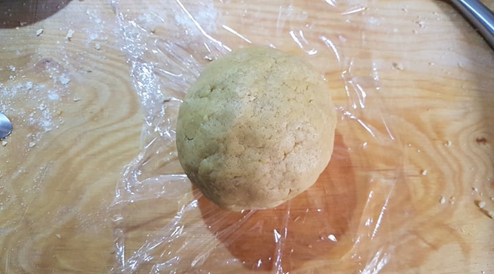 Bref. Après avoir bien travaillé la pâte, j’ai obtenu une boule que j’ai enveloppé dans du film alimentaire, avant de la faire reposer au réfrigérateur un peu plus d’une heure.